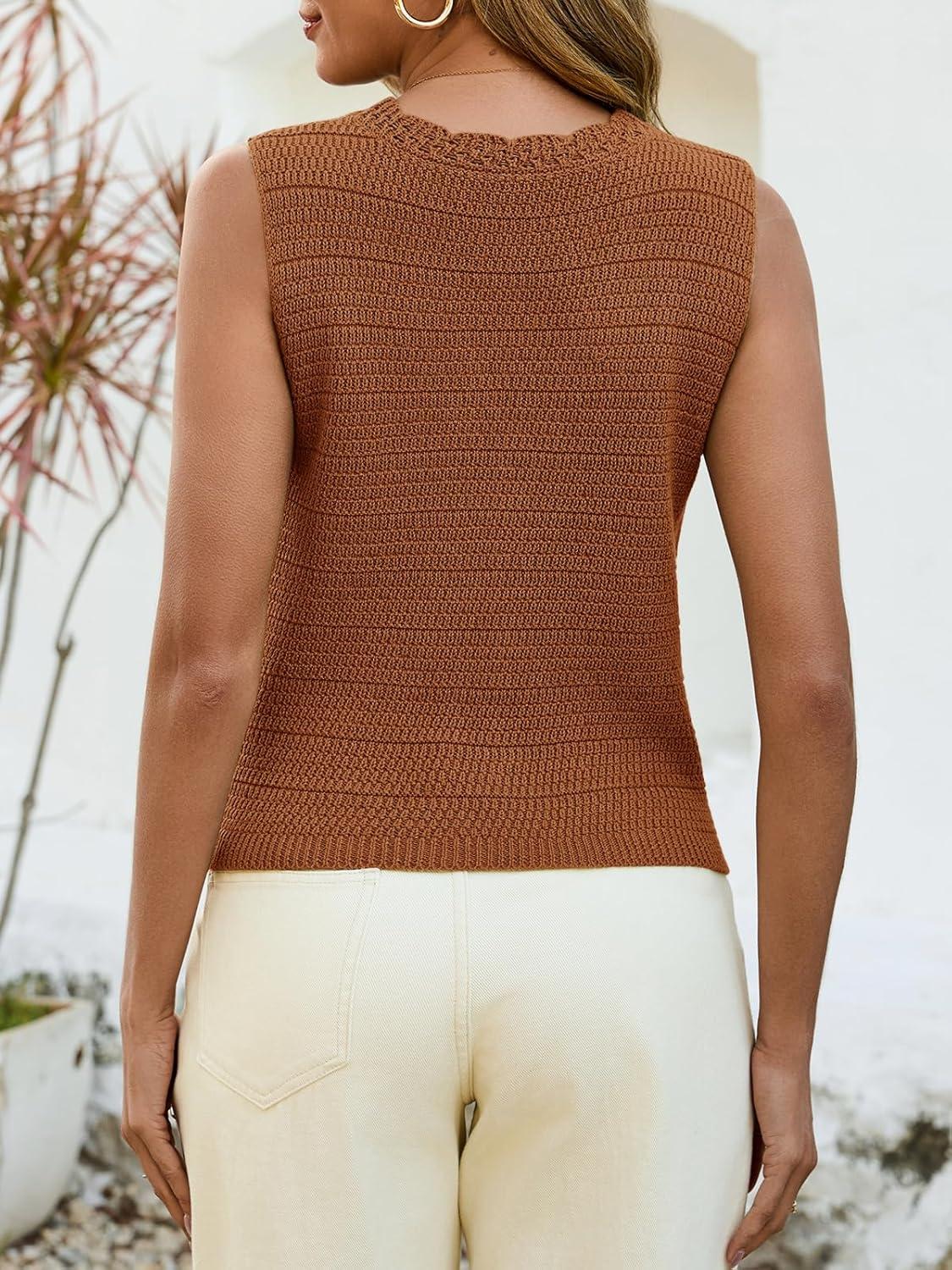 Saodimallsu Womens Sleeveless V Neck Sweater Vest Cropped Button Down Crochet Casual Loose Knit Summer Going Out Tops(Brown)