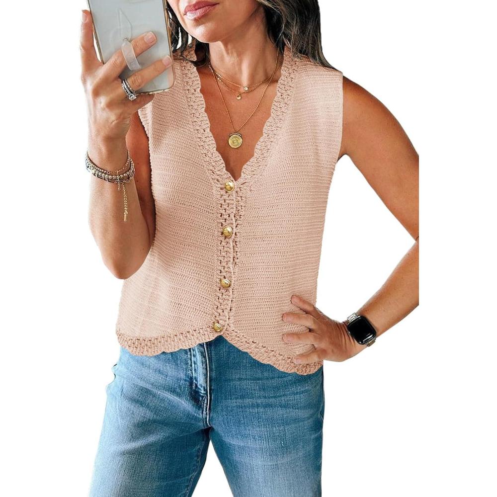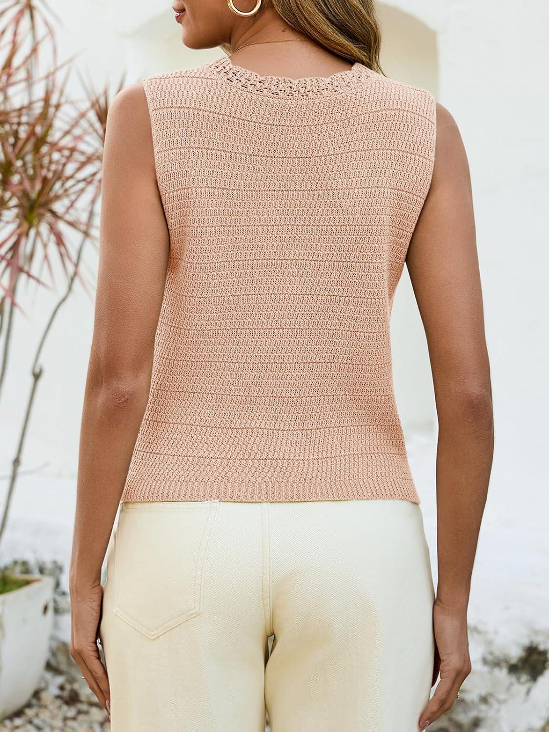Saodimallsu Womens Sleeveless V Neck Sweater Vest Cropped Button Down Crochet Casual Loose Knit Summer Going Out Tops(Nude Pink)