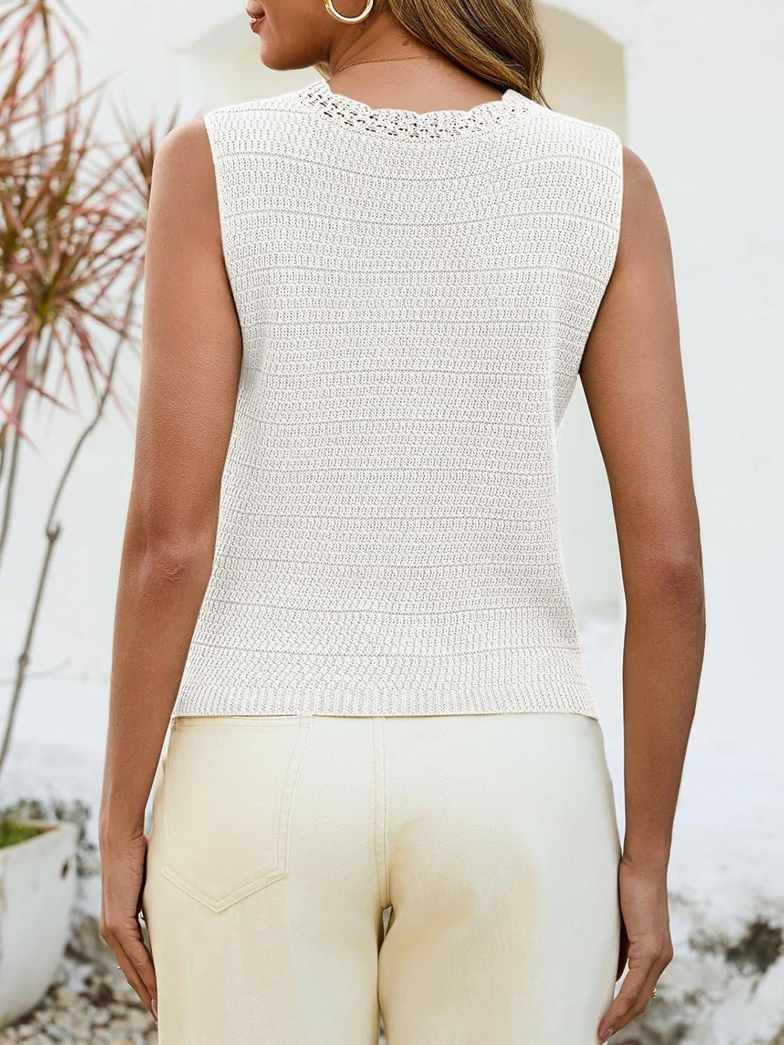 Saodimallsu Womens Sleeveless V Neck Sweater Vest Cropped Button Down Crochet Casual Loose Knit Summer Going Out Tops(White)