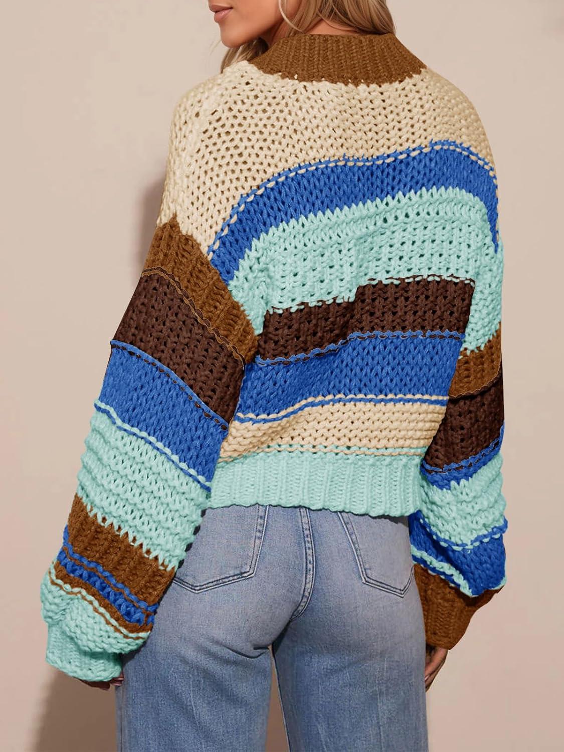 Saodimallsu Womens Striped Chunky Cardigan Sweaters Button Up Fall Trendy Color Block Long Sleeve Knit Sweater Coats(Coffee)