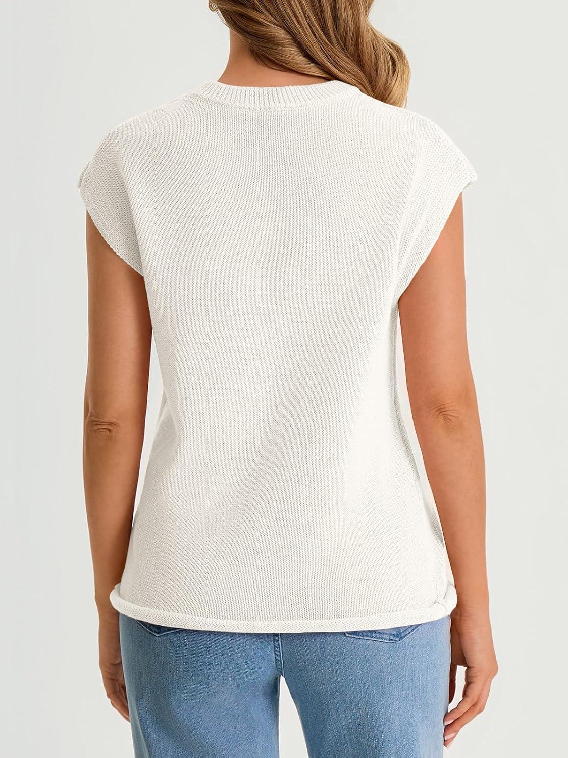 Saodimallsu Womens Summer Cap Sleeve Tops Casual Crew Neck Loose Fit Knit Lightweight Sweater Pullover Top(White-a)