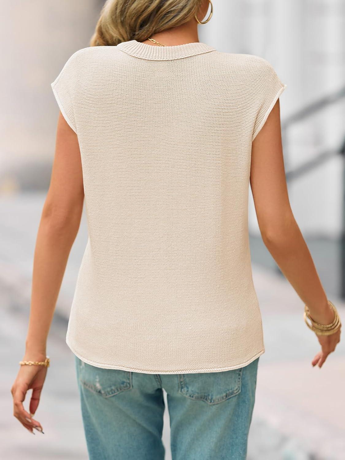 Saodimallsu Womens Summer Cap Sleeve Tops V Neck Casual Loose Fit Knit Lightweight Going Out Sweater Pullover Top(Apricot)