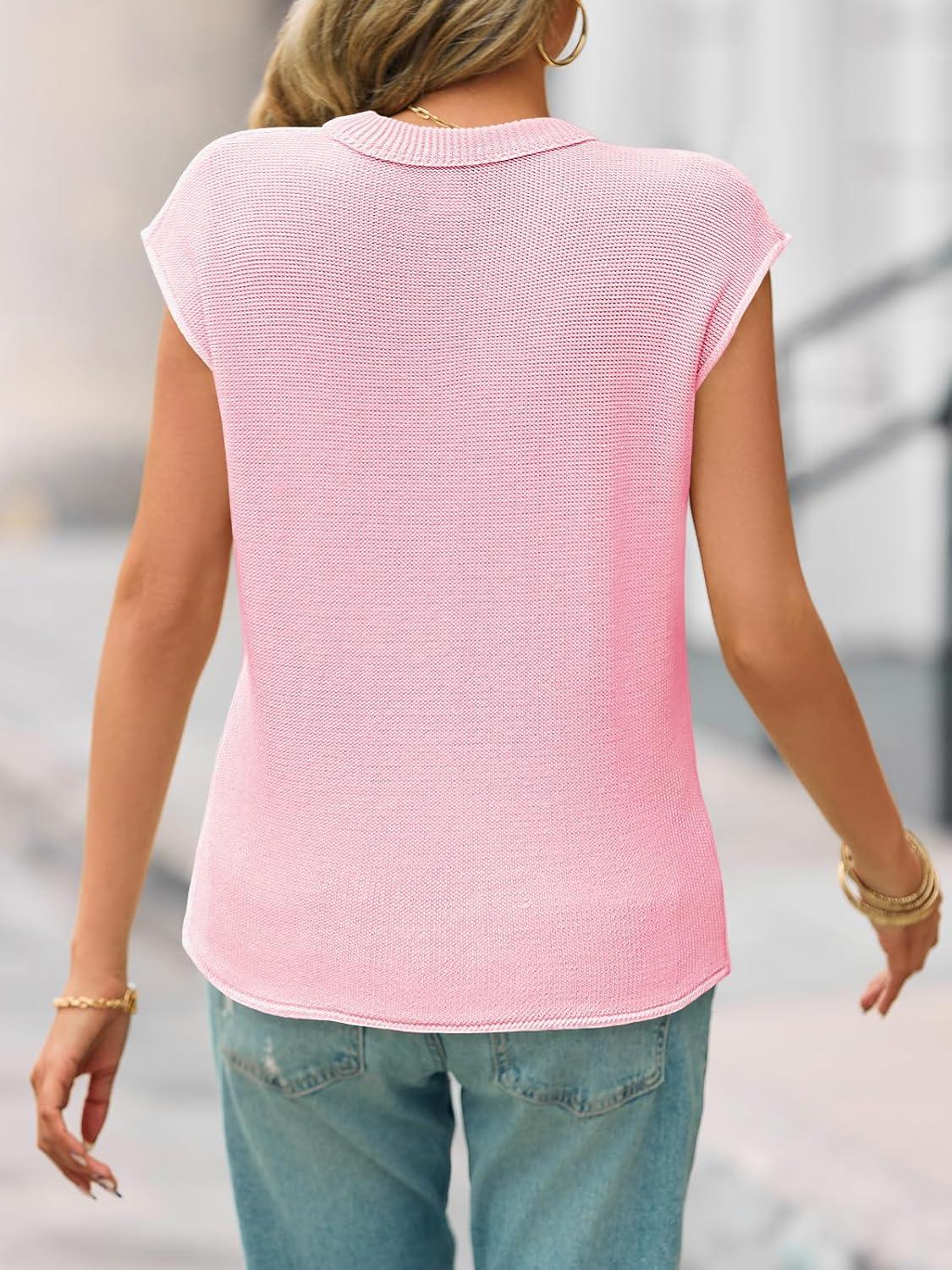 Saodimallsu Womens Summer Cap Sleeve Tops V Neck Casual Loose Fit Knit Lightweight Going Out Sweater Pullover Top(Pink)