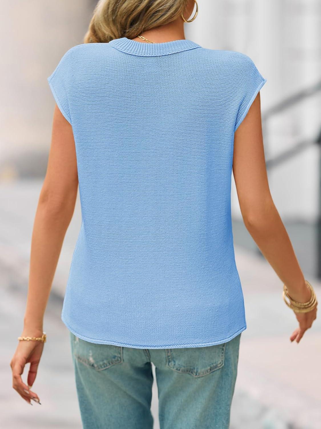Saodimallsu Womens Summer Cap Sleeve Tops V Neck Casual Loose Fit Knit Lightweight Going Out Sweater Pullover Top(Sky Blue)