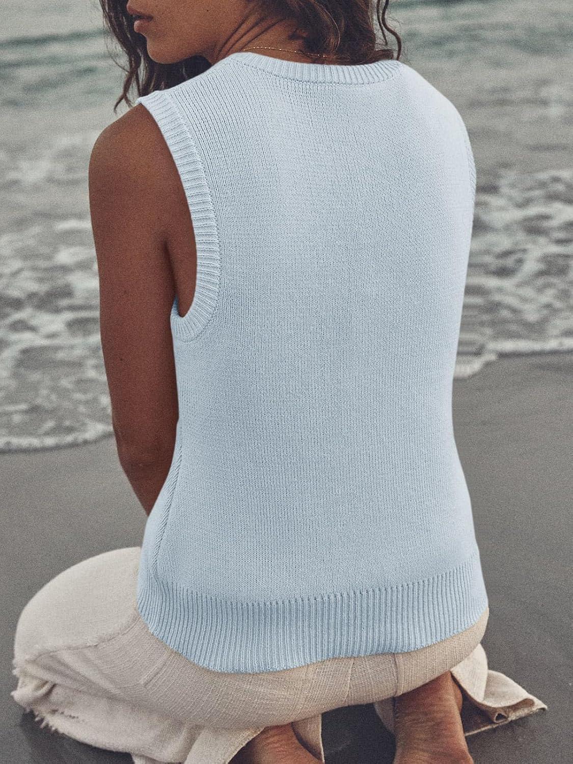 Saodimallsu Womens Summer Sweater Vest Sleeveless Ribbed Knit Tank Tops Going Out Casual Basic Scoop Neck Tshirt(Light Grey)
