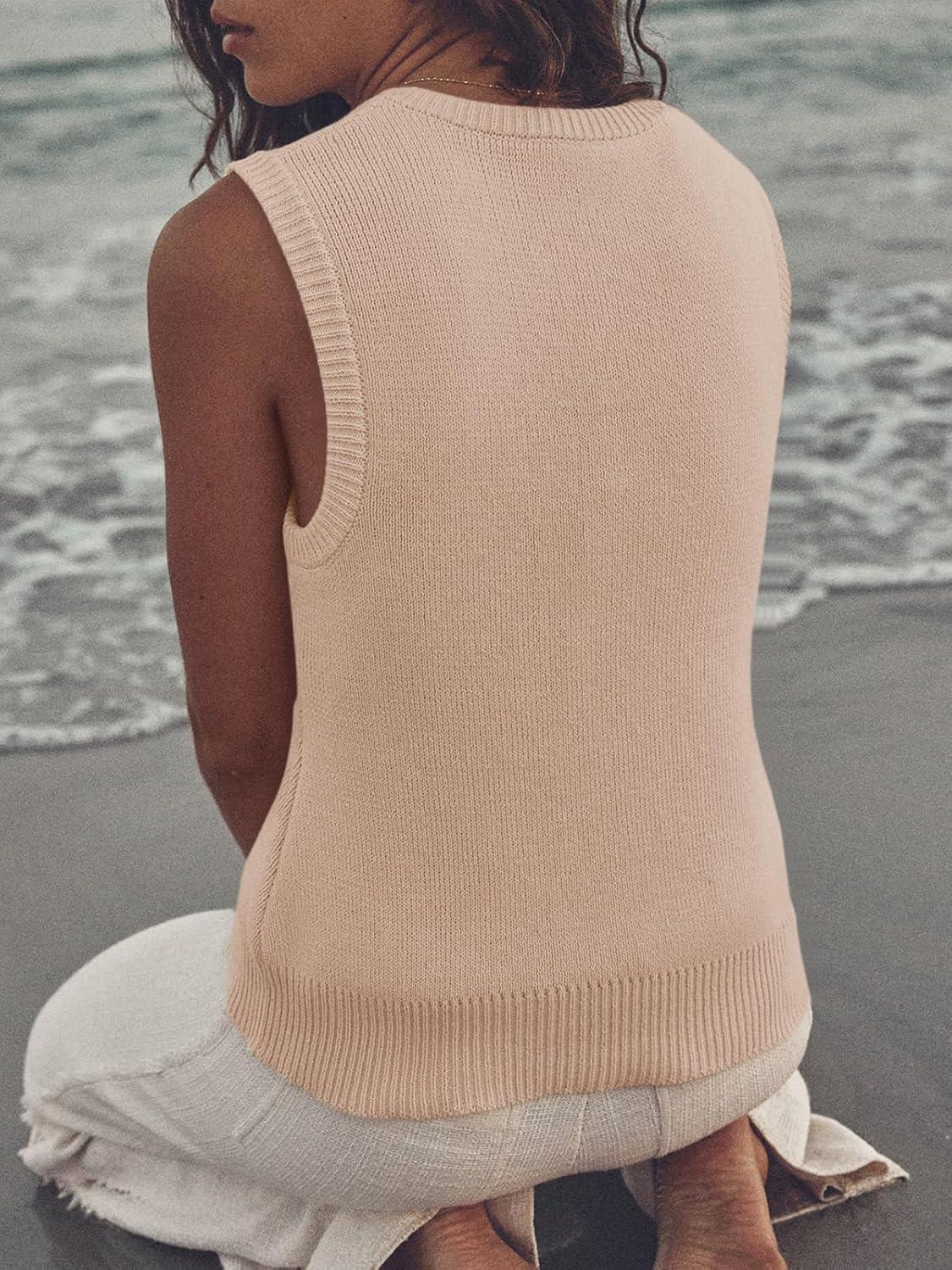 Saodimallsu Womens Summer Sweater Vest Sleeveless Ribbed Knit Tank Tops Going Out Casual Basic Scoop Neck Tshirt(Light Khaki)