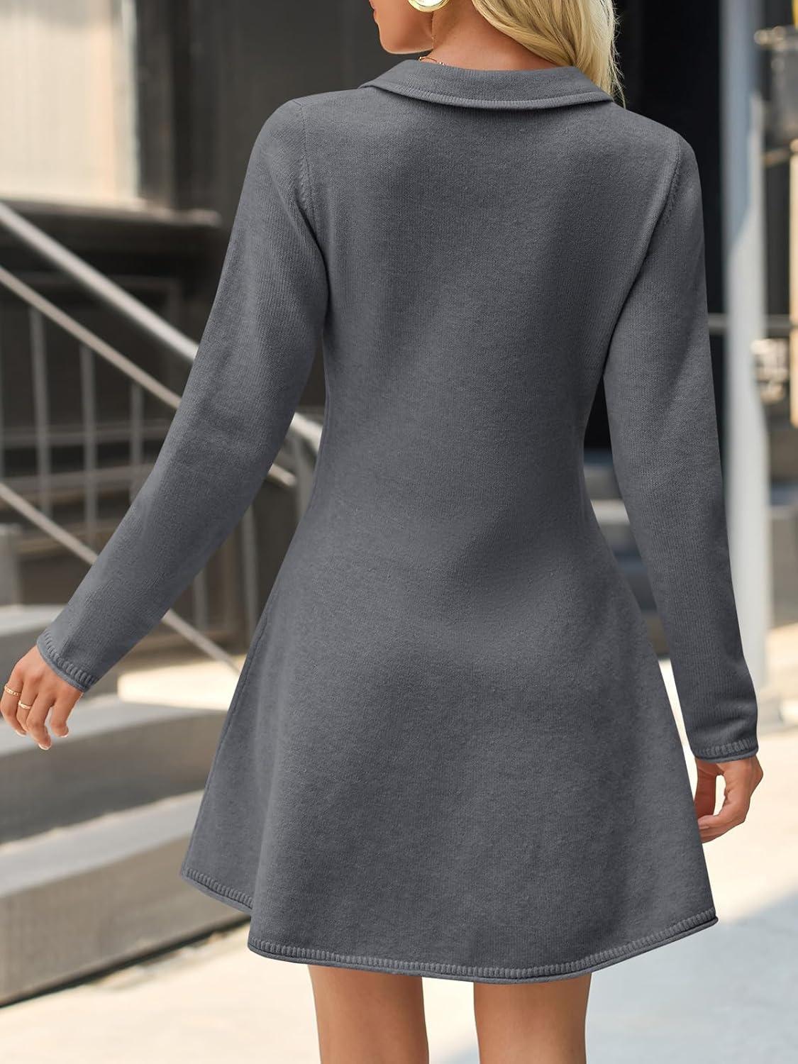 Saodimallsu Womens Sweater Dress 2025 Fall Polo Collared Long Sleeve Button V Neck A line Preppy Knit Dresses(Dark Grey)