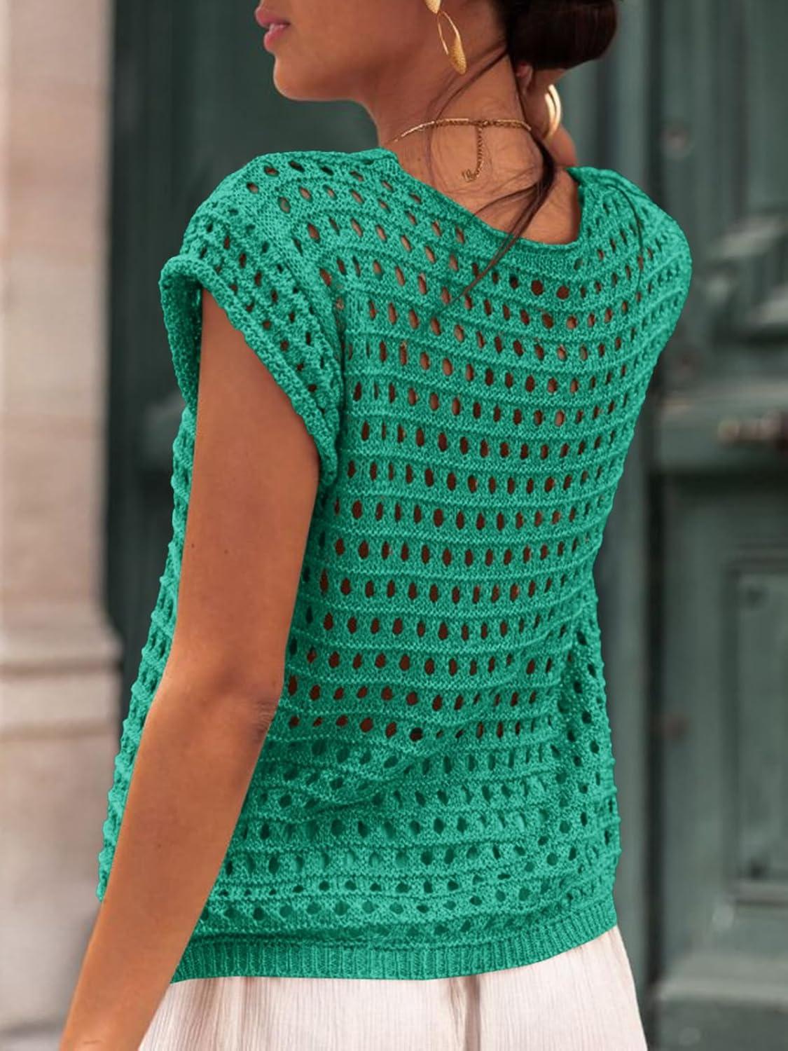 Saodimallsu Womens Tie Crochet Shrug Short Sleeve Open Front Lightweight Knit Cropped Cardigan Sweaters Cover Up(Lake Green)