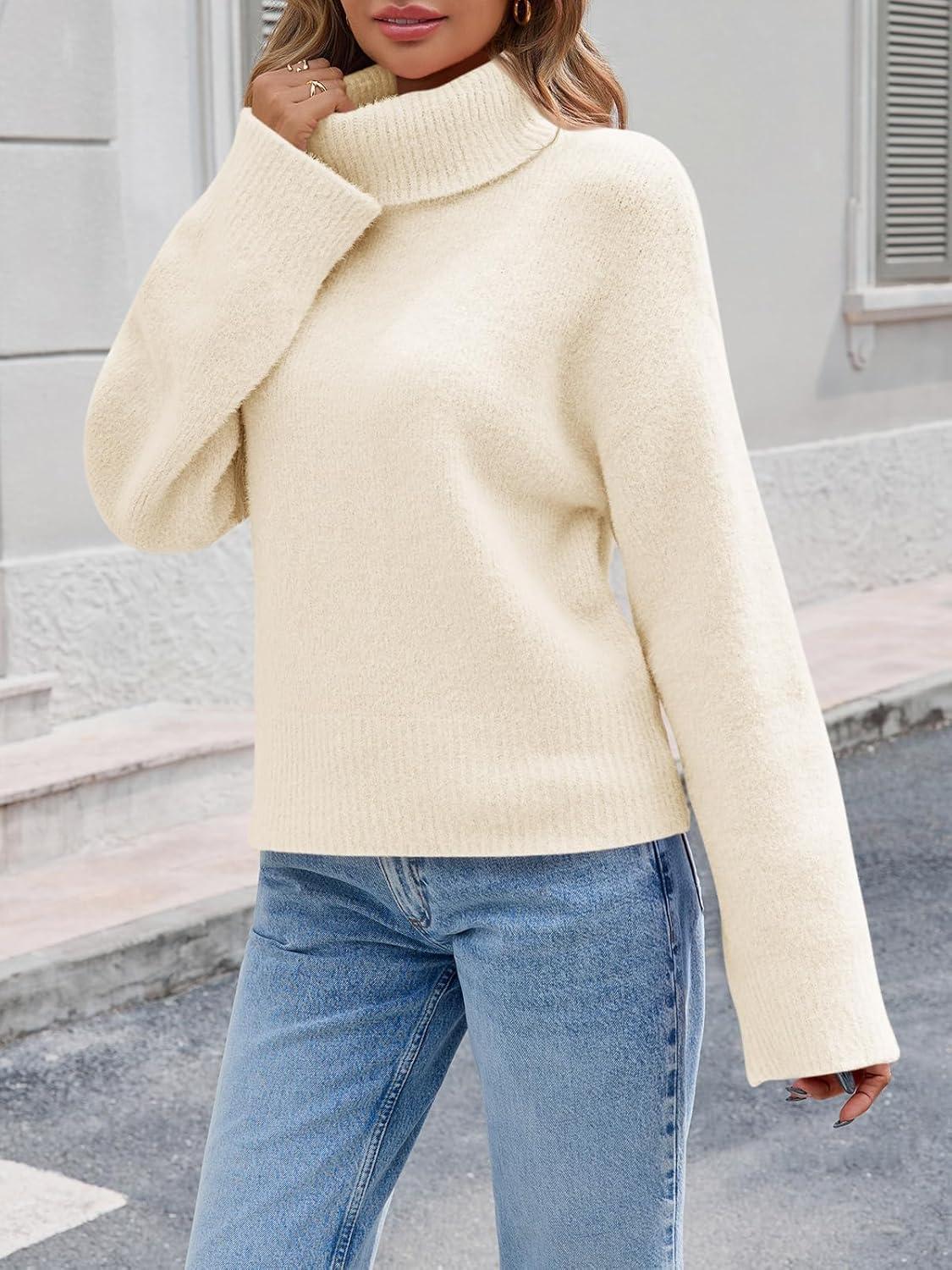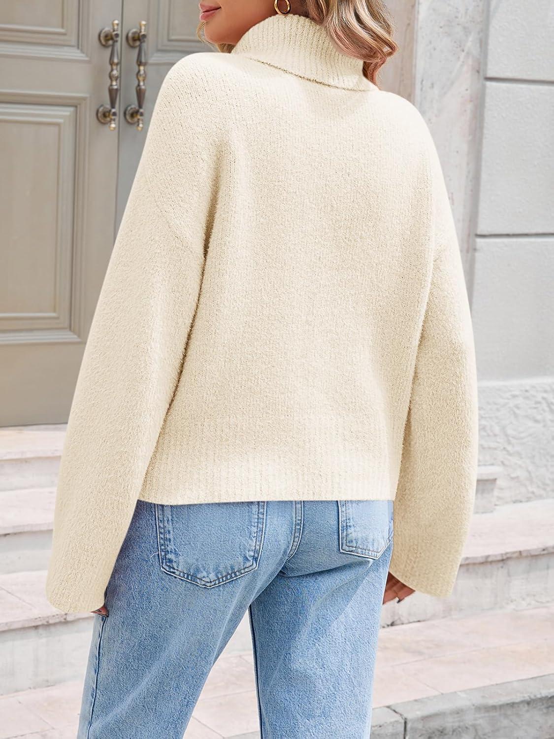 Saodimallsu Womens Turtleneck Fuzzy Sweaters Long Sleeve Chunky Knit Casual Loose Warm Fall Winter Pullover Sweater(Beige)