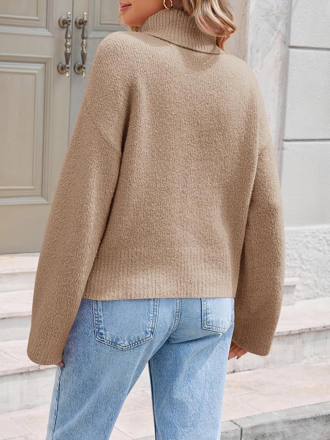 Saodimallsu Womens Turtleneck Fuzzy Sweaters Long Sleeve Chunky Knit Casual Loose Warm Fall Winter Pullover Sweater(Khaki)