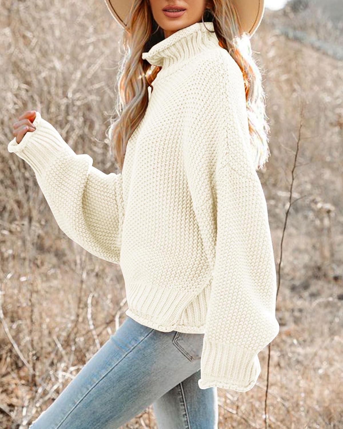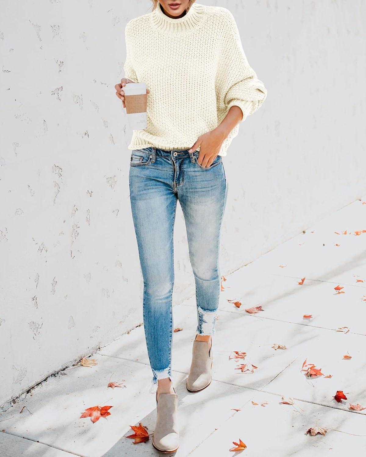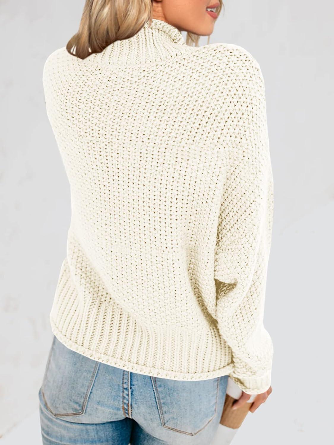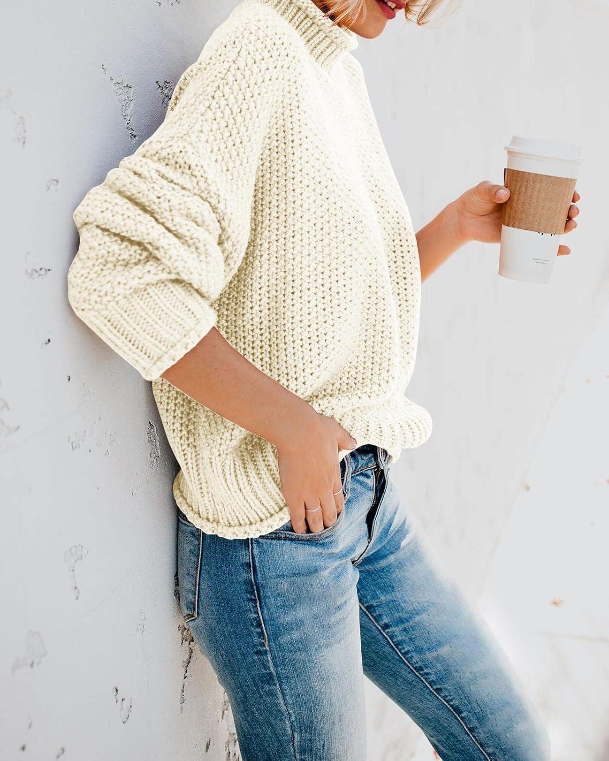 Saodimallsu Womens Turtleneck Oversized Sweaters Batwing Long Sleeve Pullover Loose Chunky Knit Jumper(Beige-white)