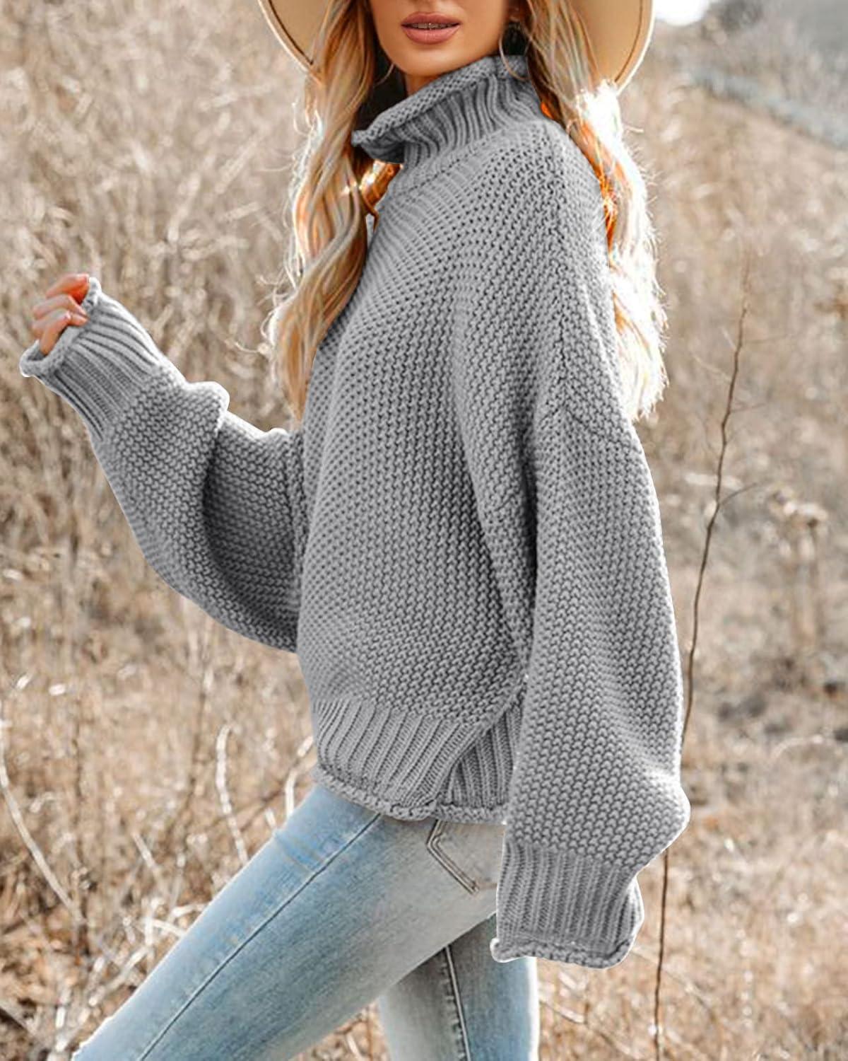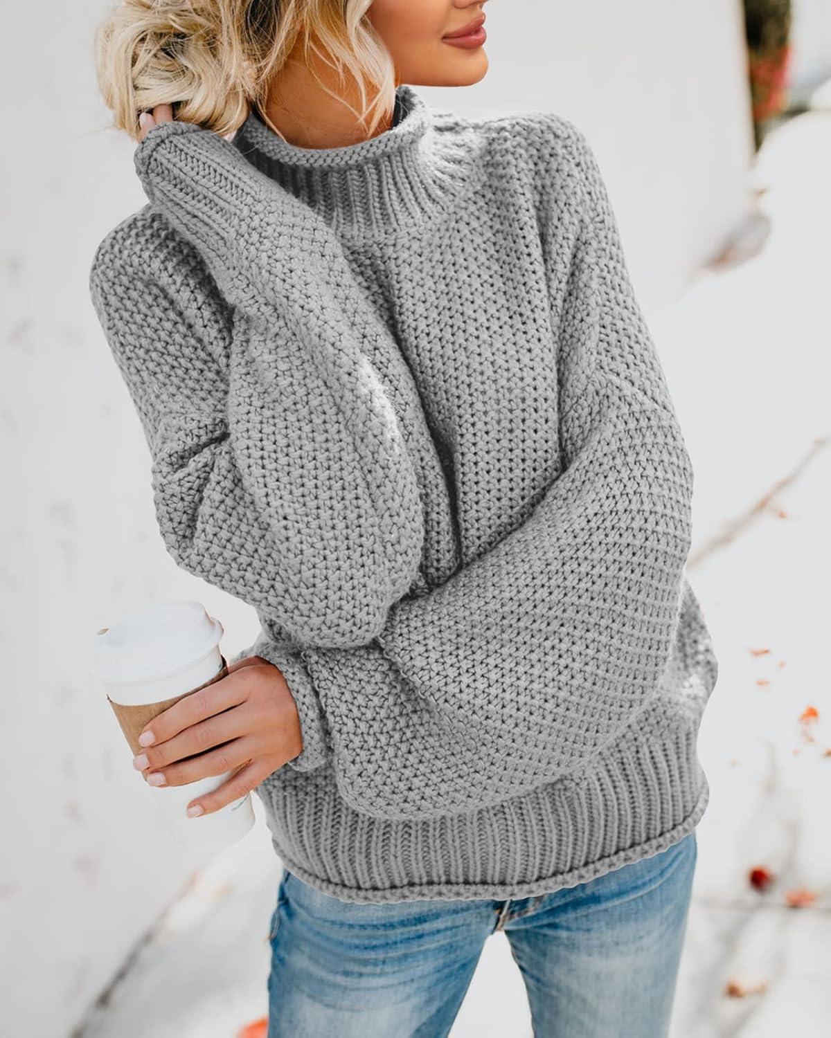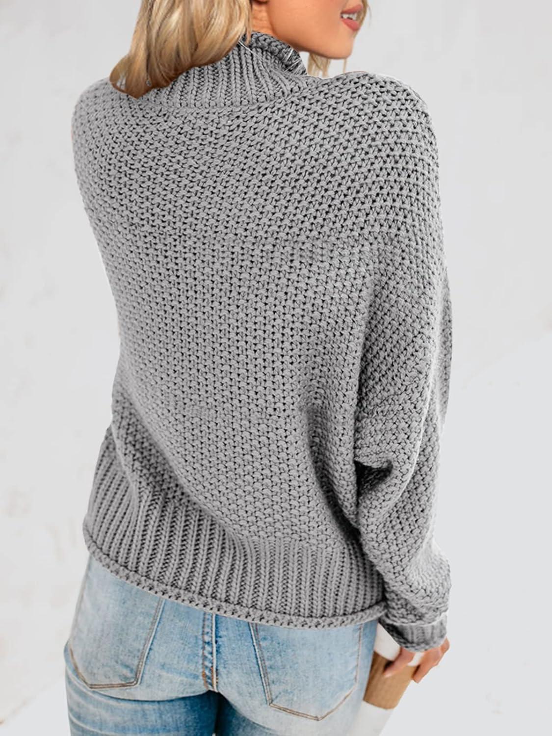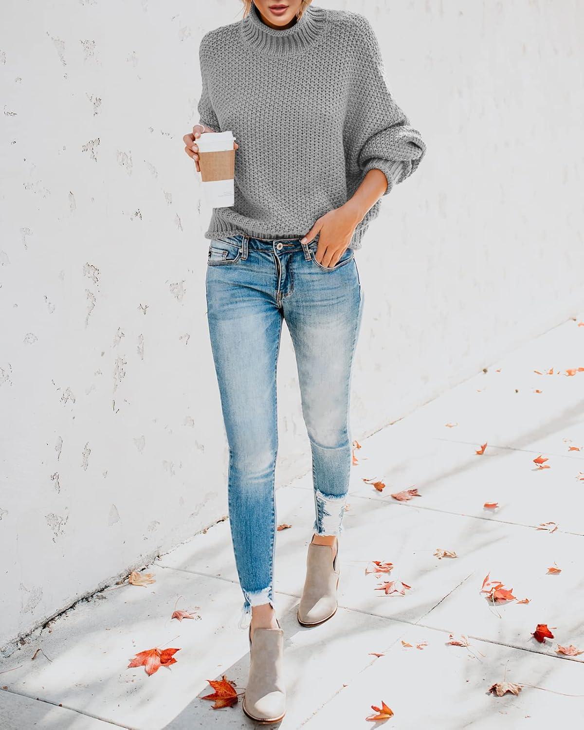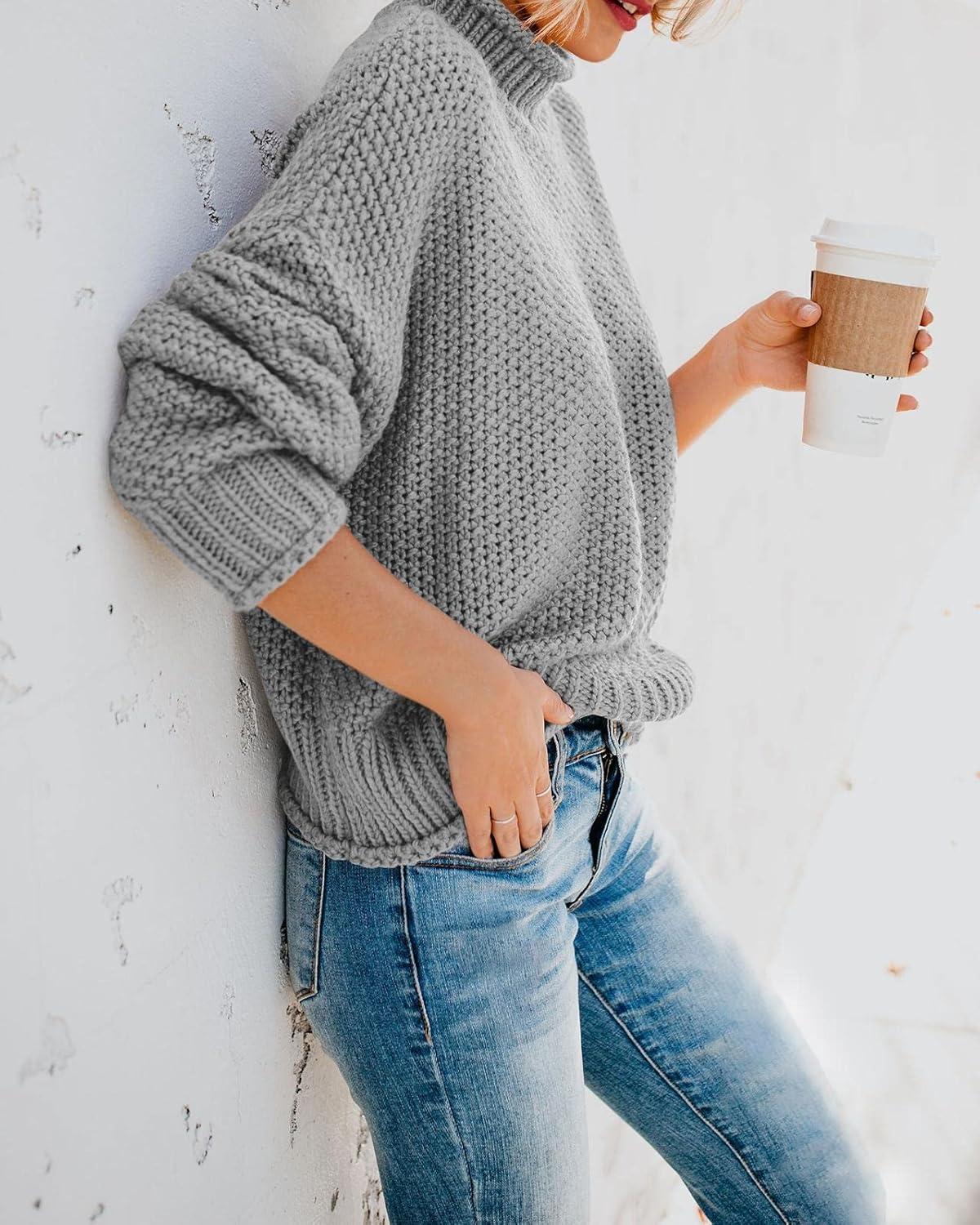 Saodimallsu Womens Turtleneck Oversized Sweaters Batwing Long Sleeve Pullover Loose Chunky Knit Jumper(Gray)