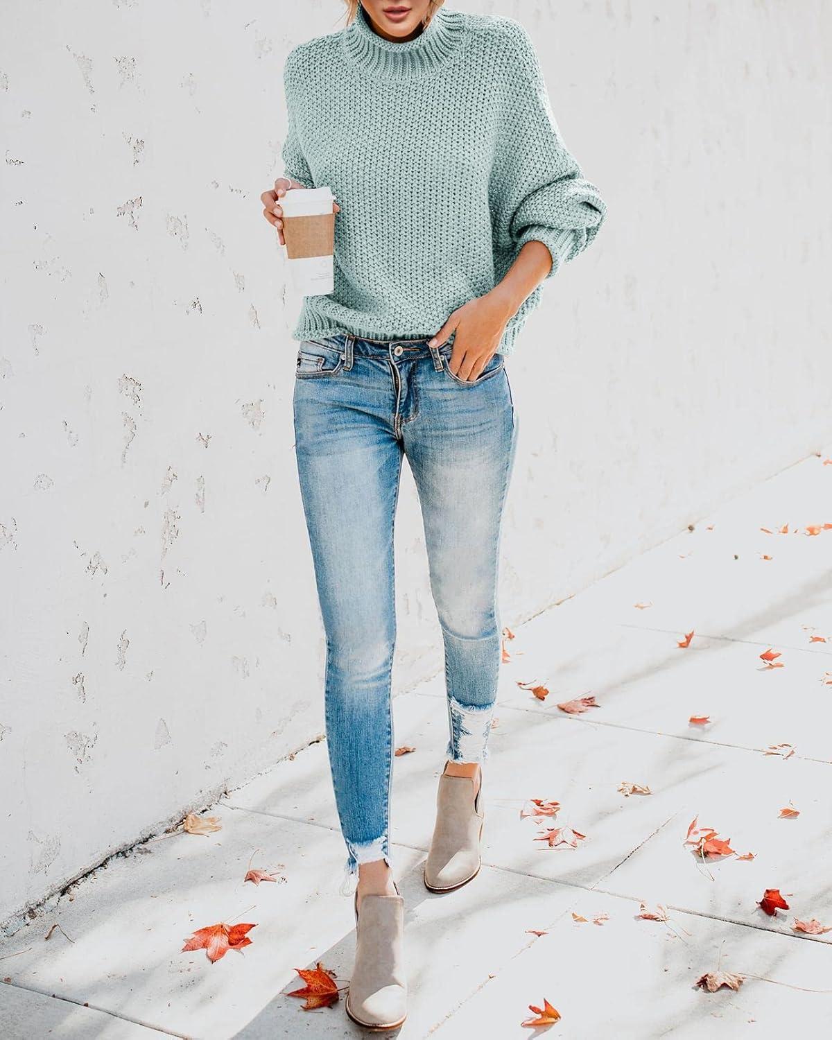 Saodimallsu Womens Turtleneck Oversized Sweaters Batwing Long Sleeve Pullover Loose Chunky Knit Jumper(Green)