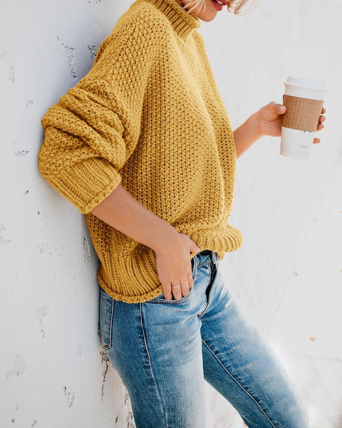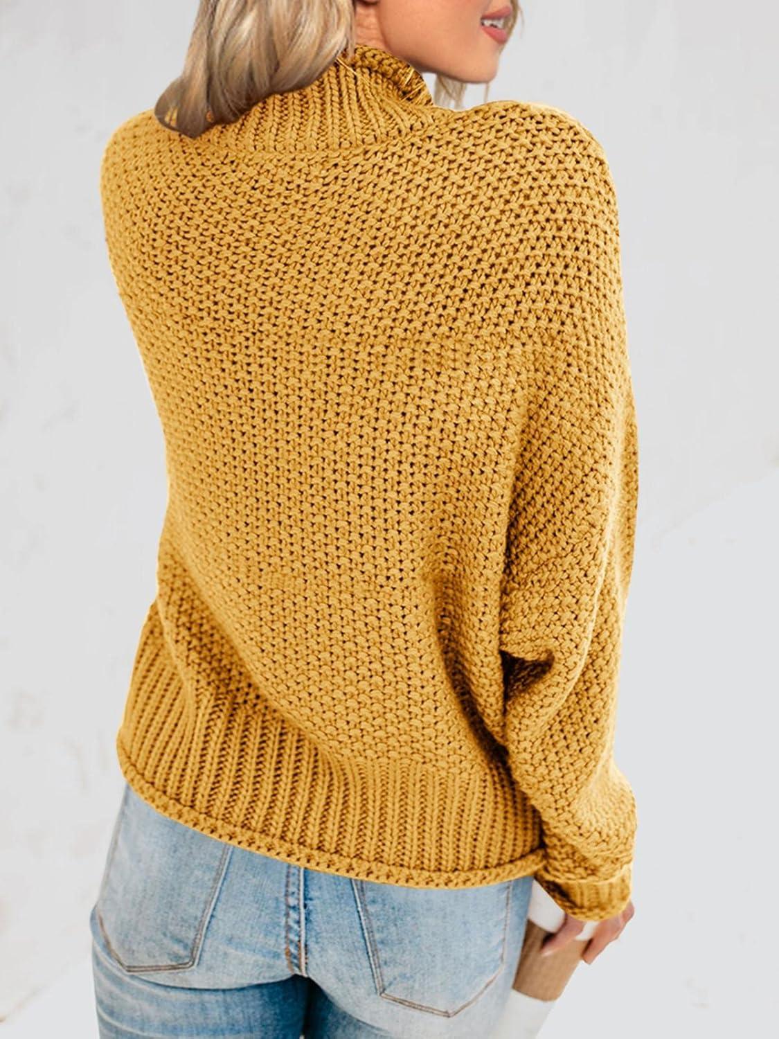 Saodimallsu Womens Turtleneck Oversized Sweaters Batwing Long Sleeve Pullover Loose Chunky Knit Jumper(Yellow)