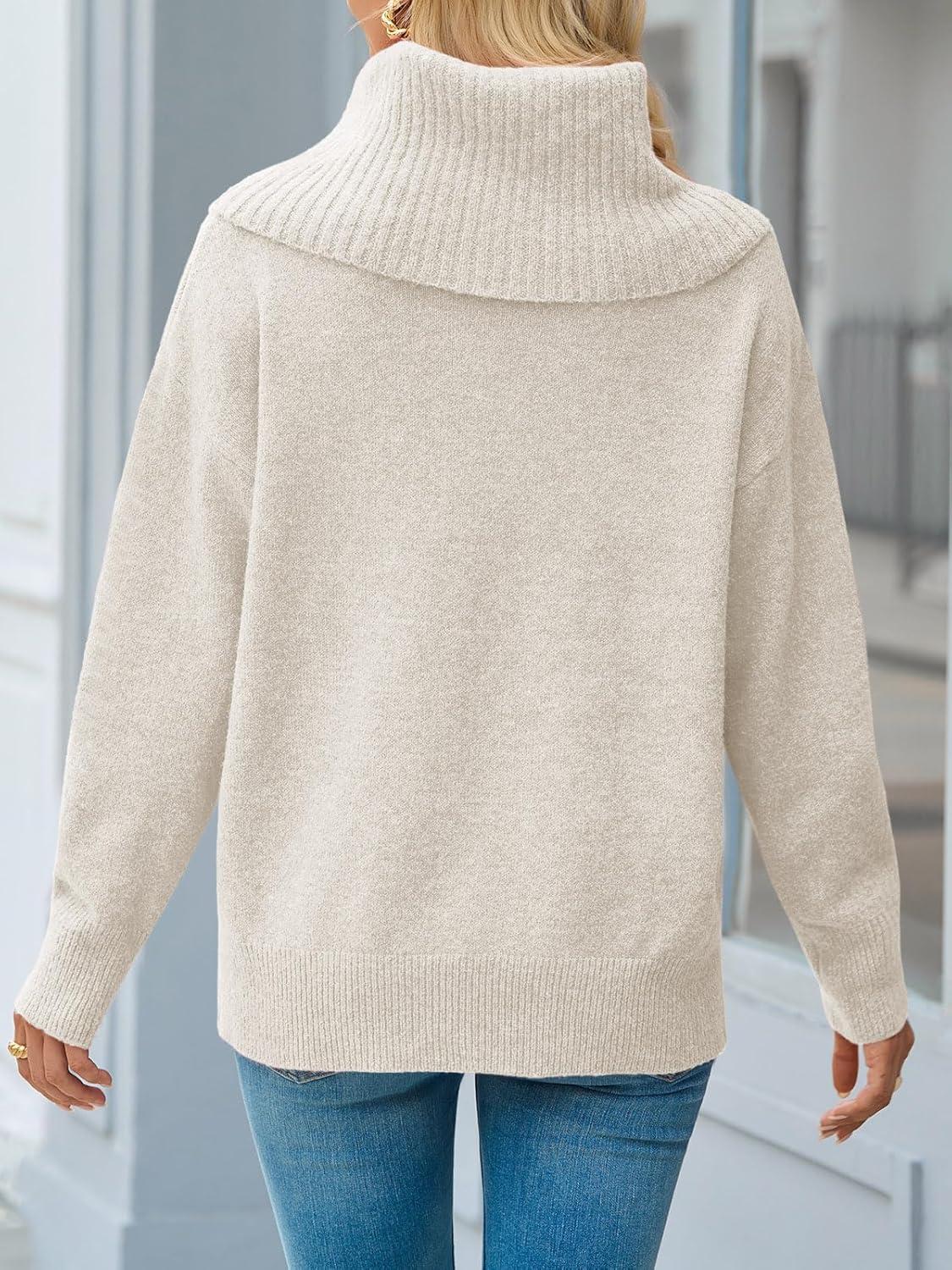Saodimallsu Womens Turtleneck Sweaters Long Sleeve Casual Soft Knit Loose Fit Basic Fall Pullover Sweater Tops(Beige)