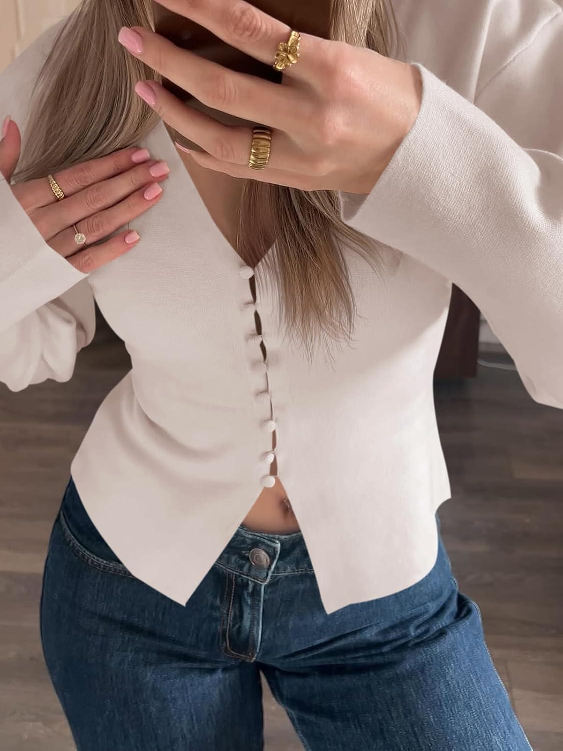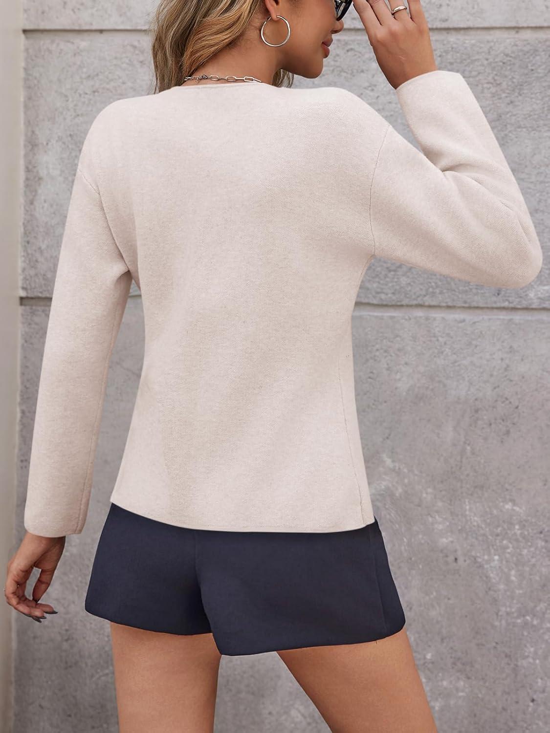 Saodimallsu Womens V Neck Cardigan Sweaters Button Up Fall Trendy Front Split Long Sleeve Sweater Blazer(Apricot)