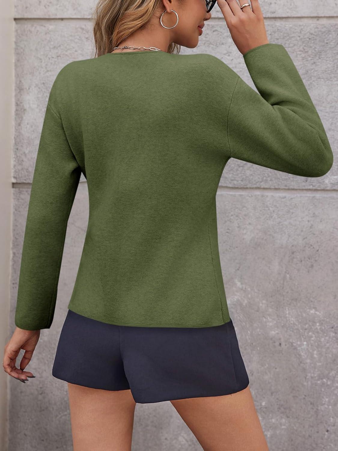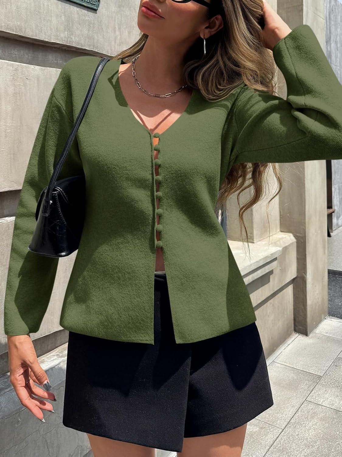 Saodimallsu Womens V Neck Cardigan Sweaters Button Up Fall Trendy Front Split Long Sleeve Sweater Blazer(Army Green)