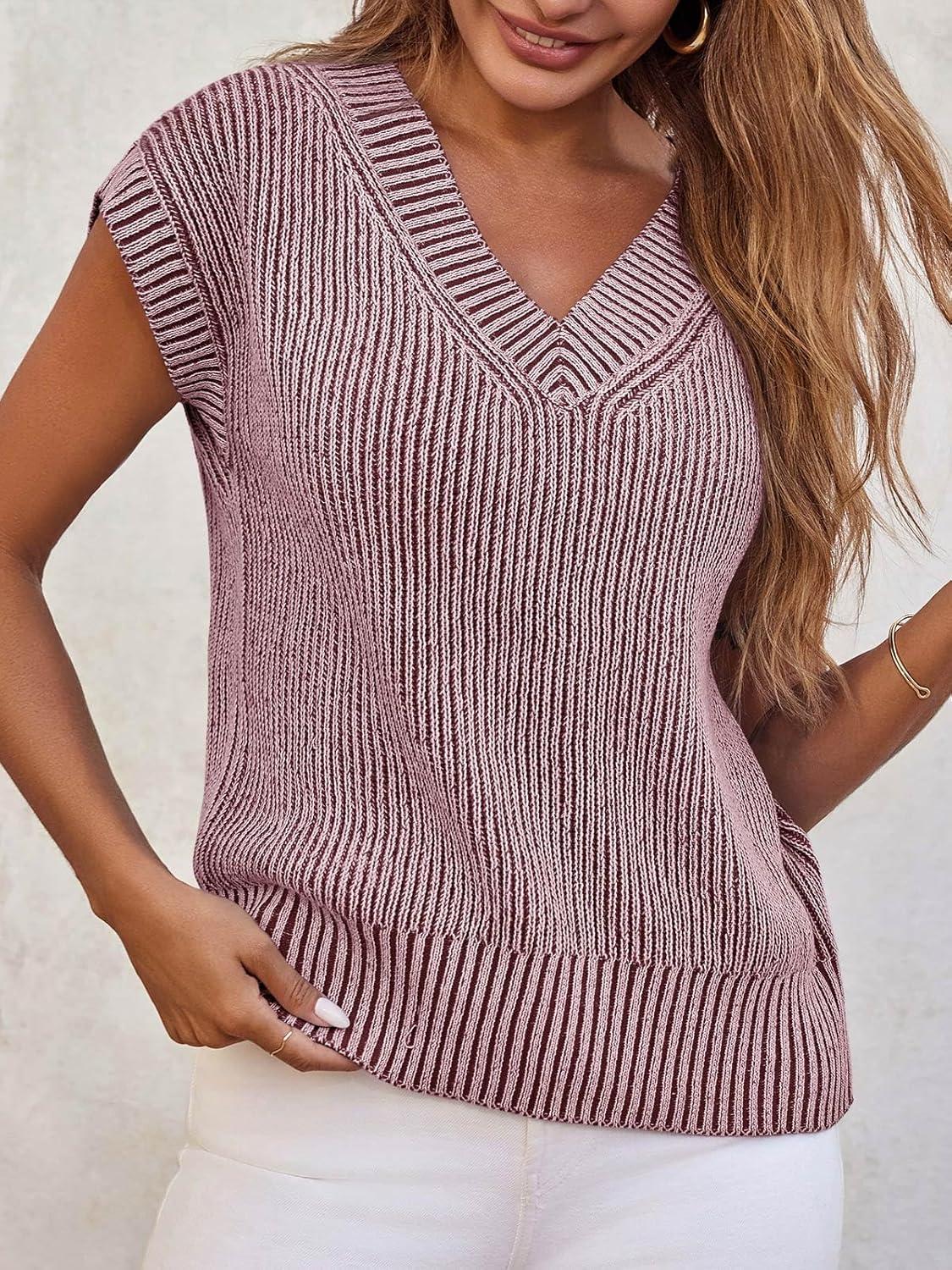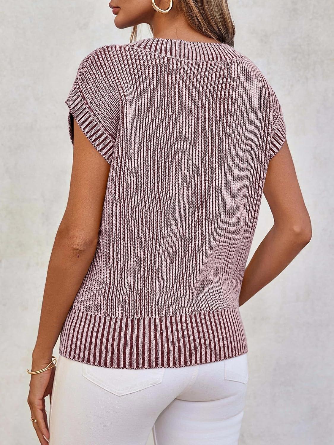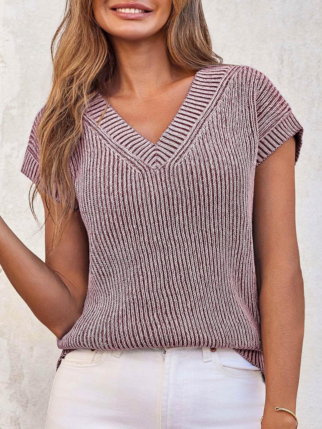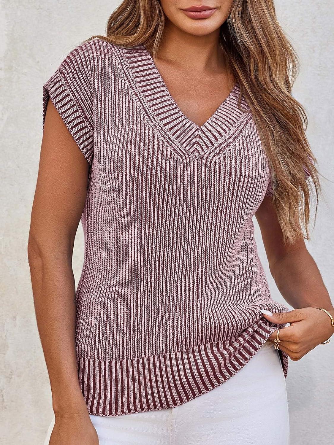 Saodimallsu Womens V Neck Short Sleeve Sweater Summer Lightweight Cap Sleeve Casual Loose Knit Pullover Tank Tops(Burgundy)