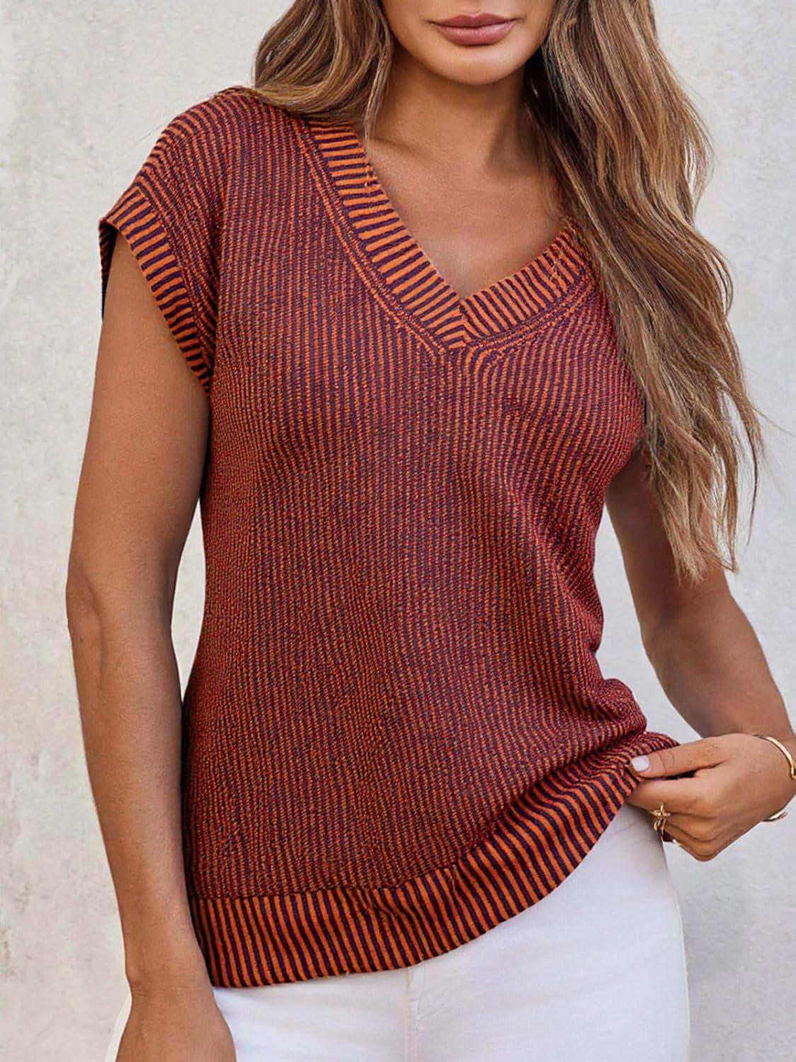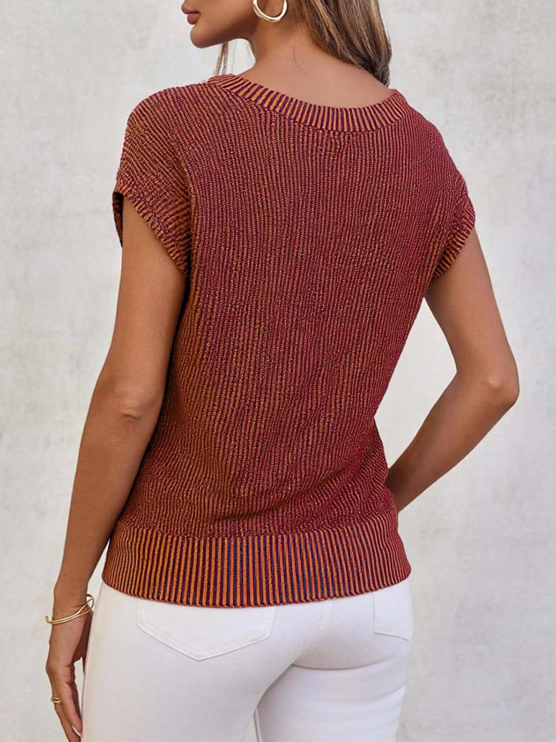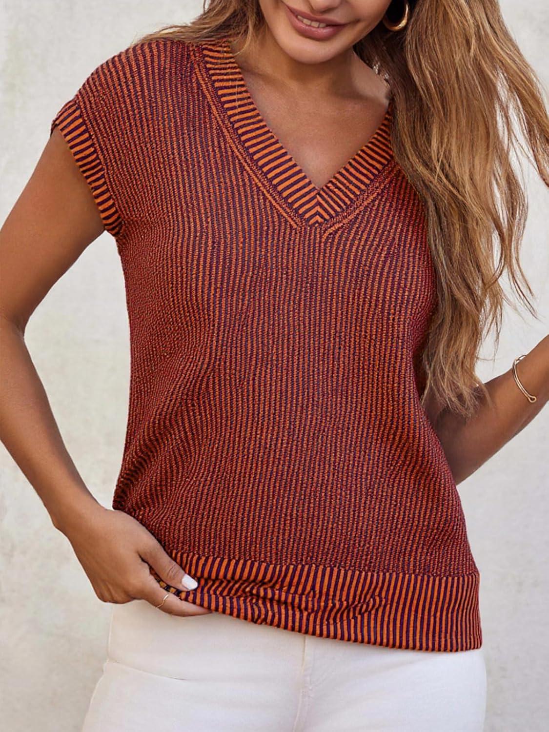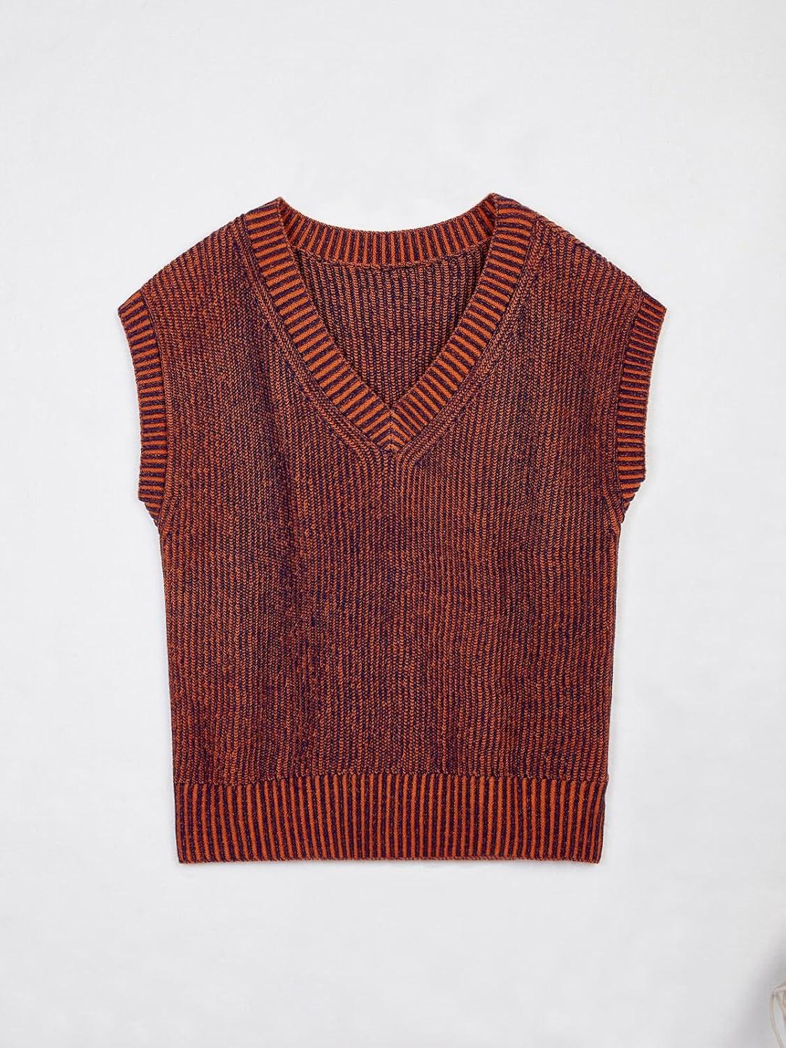 Saodimallsu Womens V Neck Short Sleeve Sweater Summer Lightweight Cap Sleeve Casual Loose Knit Pullover Tank Tops(Orange)