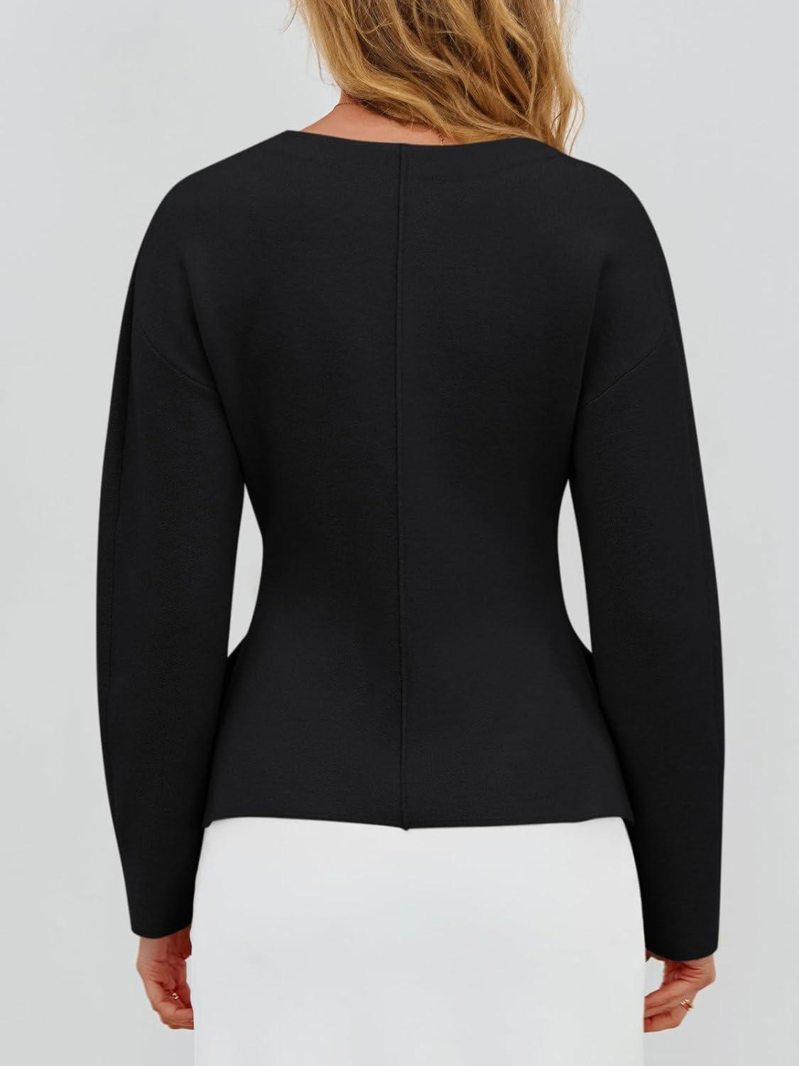 Saodimallsu Womens V Neck Sweater Blazer Peplum Long Sleeve Knit Open Front Split Cardigan Sweaters(Black)