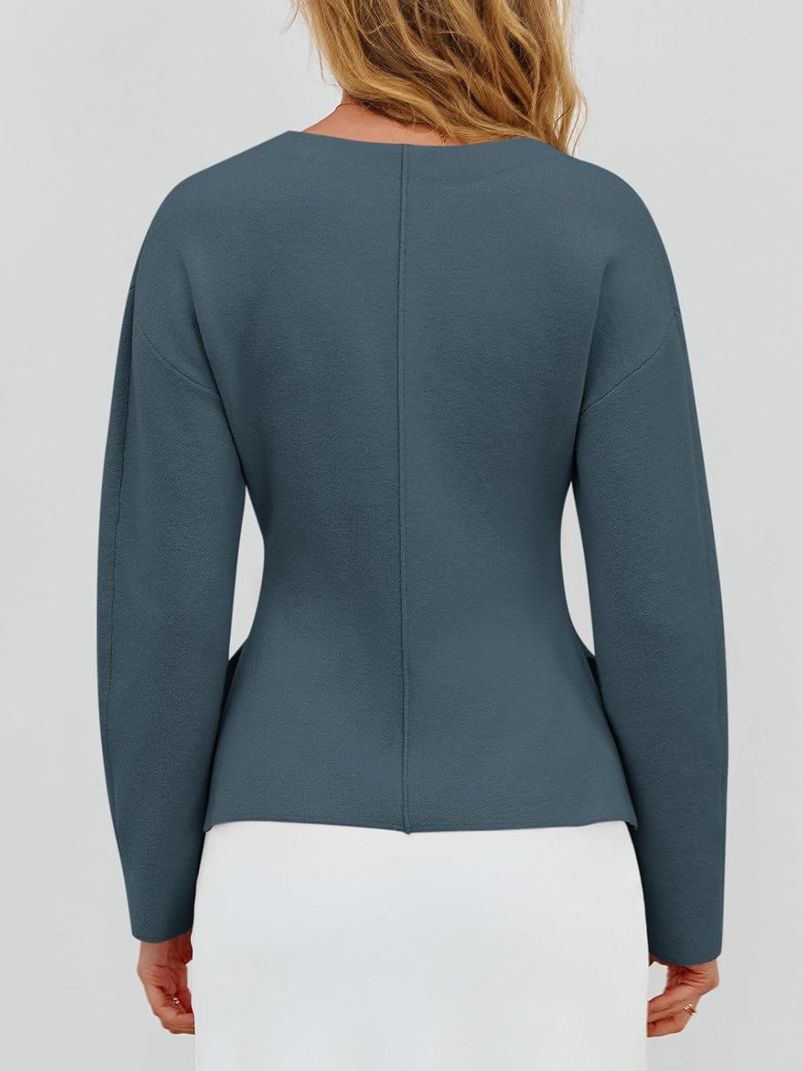 Saodimallsu Womens V Neck Sweater Blazer Peplum Long Sleeve Knit Open Front Split Cardigan Sweaters(Blue Grey)