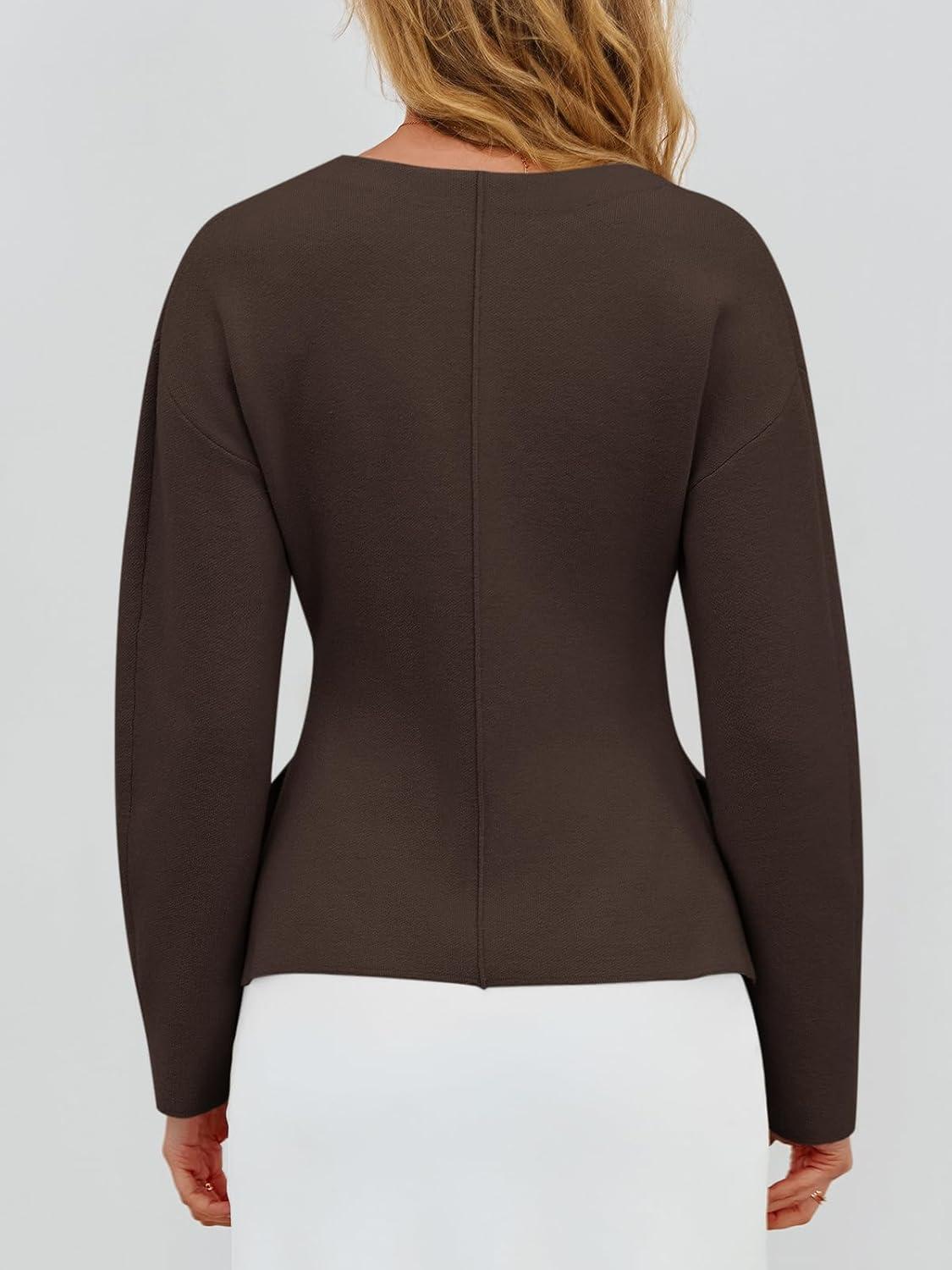 Saodimallsu Womens V Neck Sweater Blazer Peplum Long Sleeve Knit Open Front Split Cardigan Sweaters(Coffee)