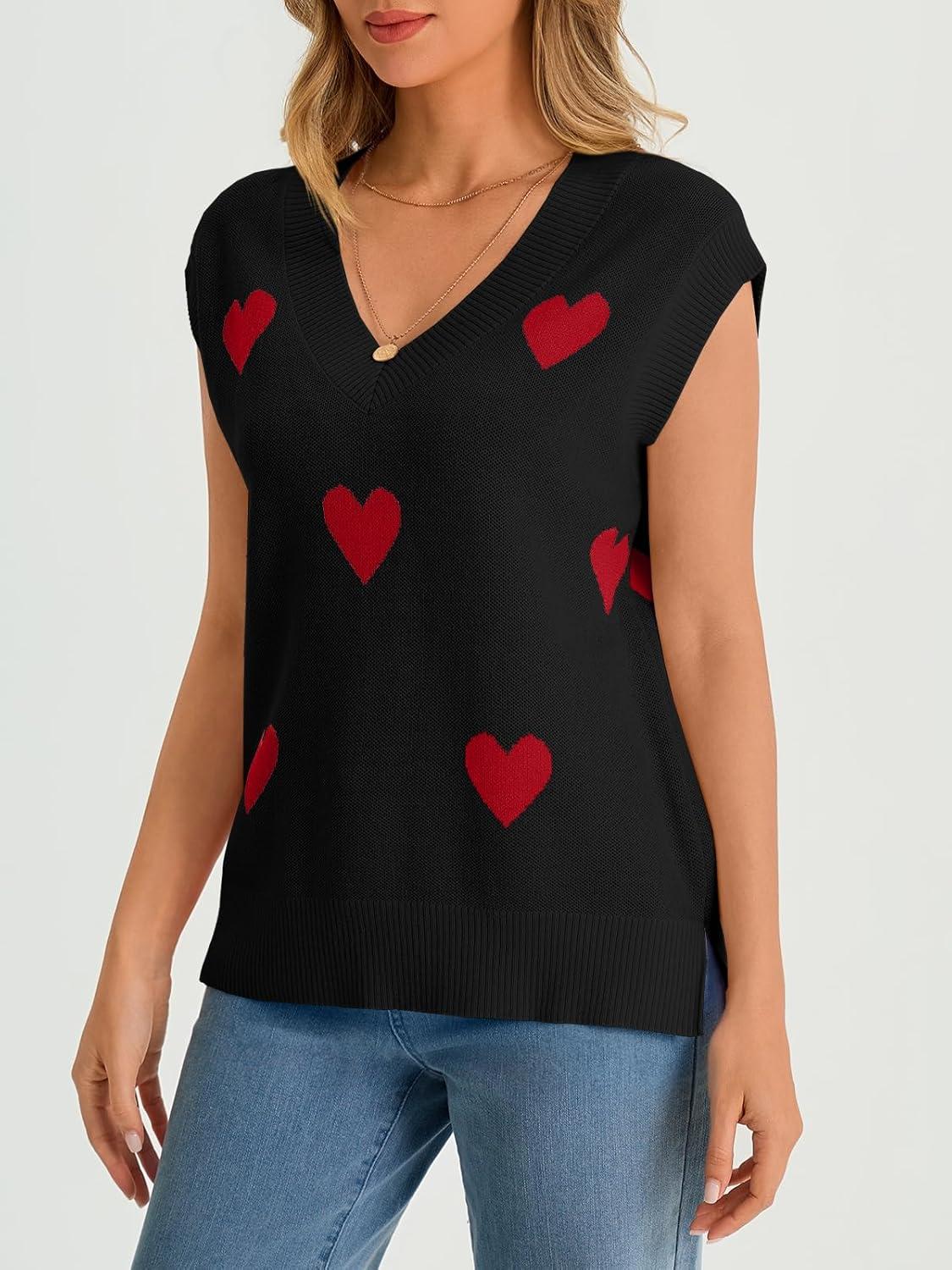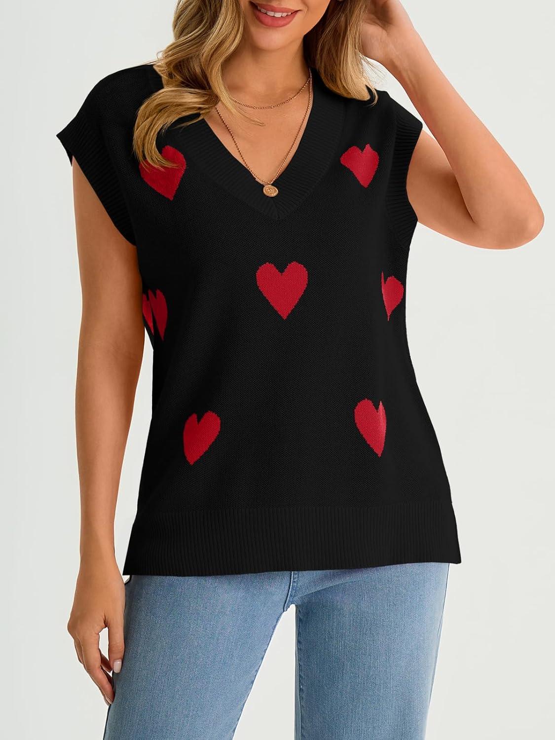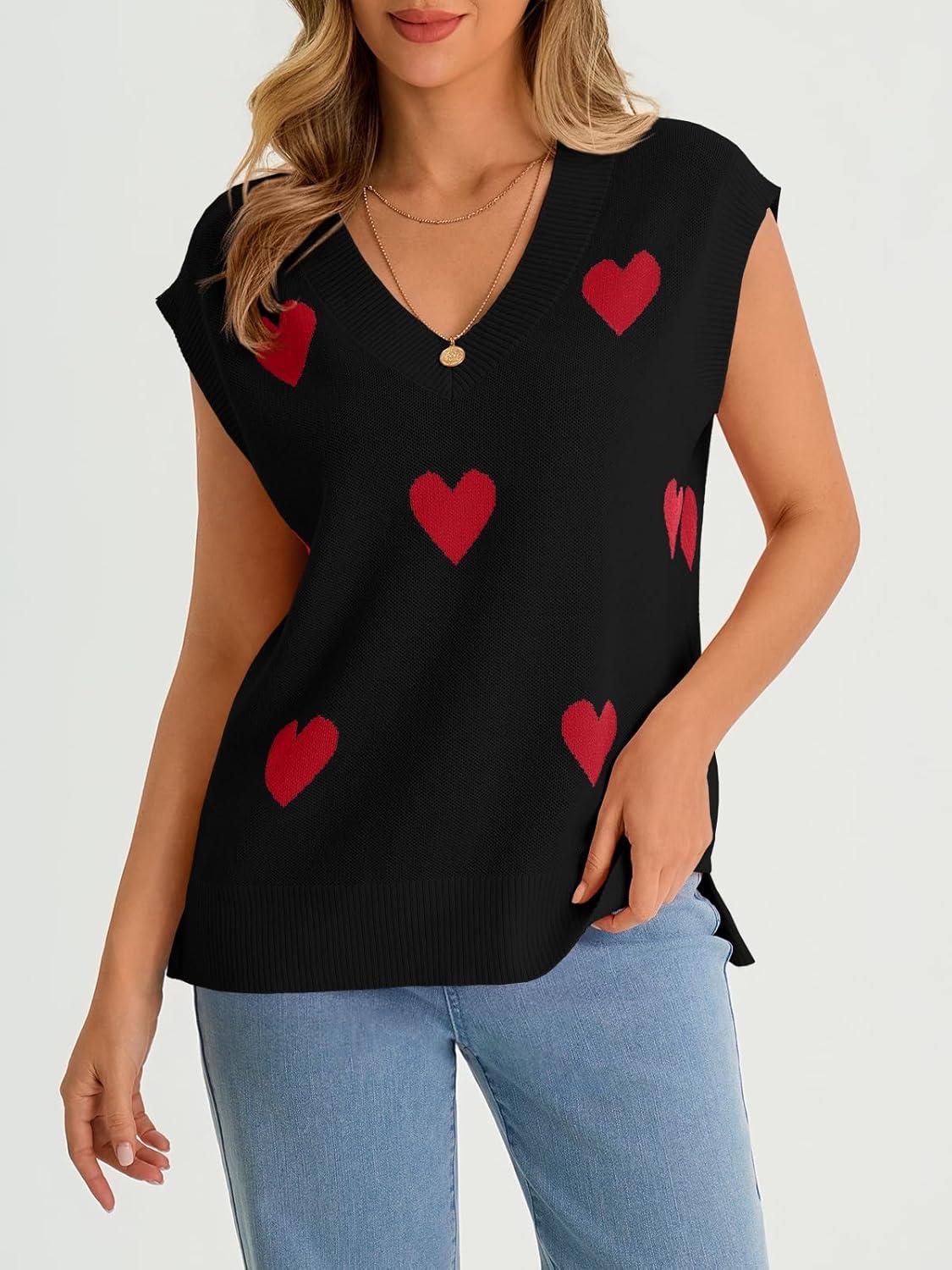 Saodimallsu Womens V Neck Sweater Vest Oversized Ribbed Knit Sleeveless Casual Loose Fit Pullover Tank Top(Black-a)