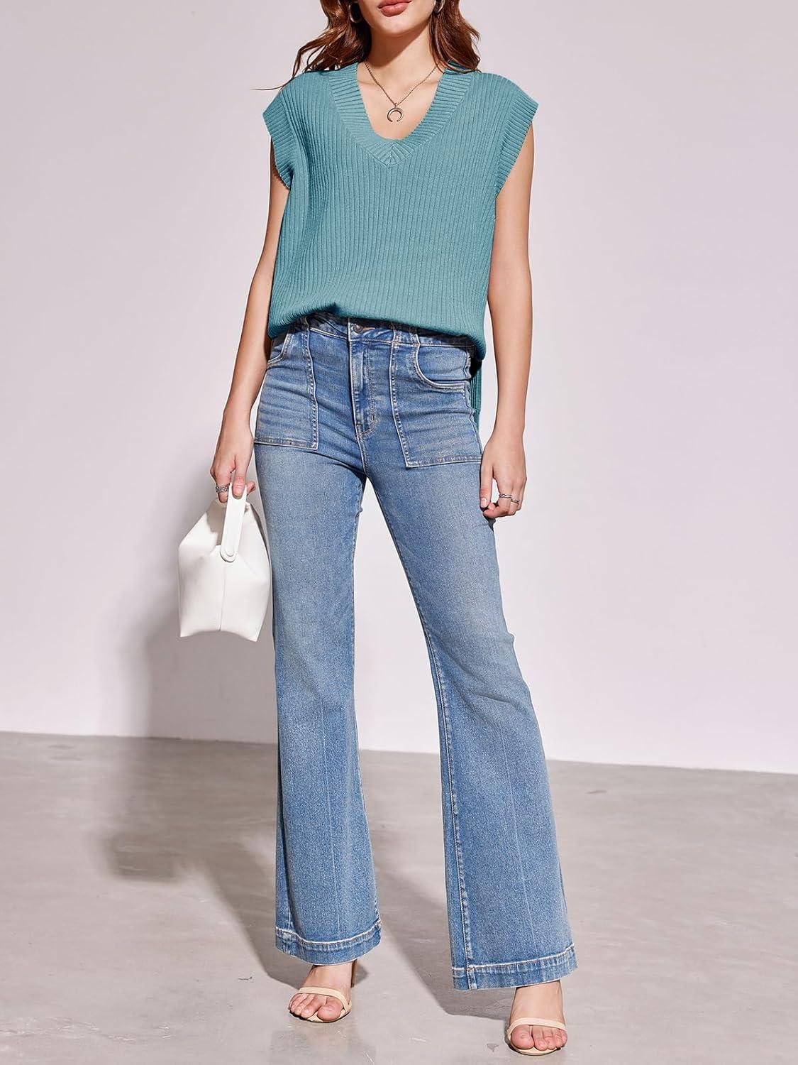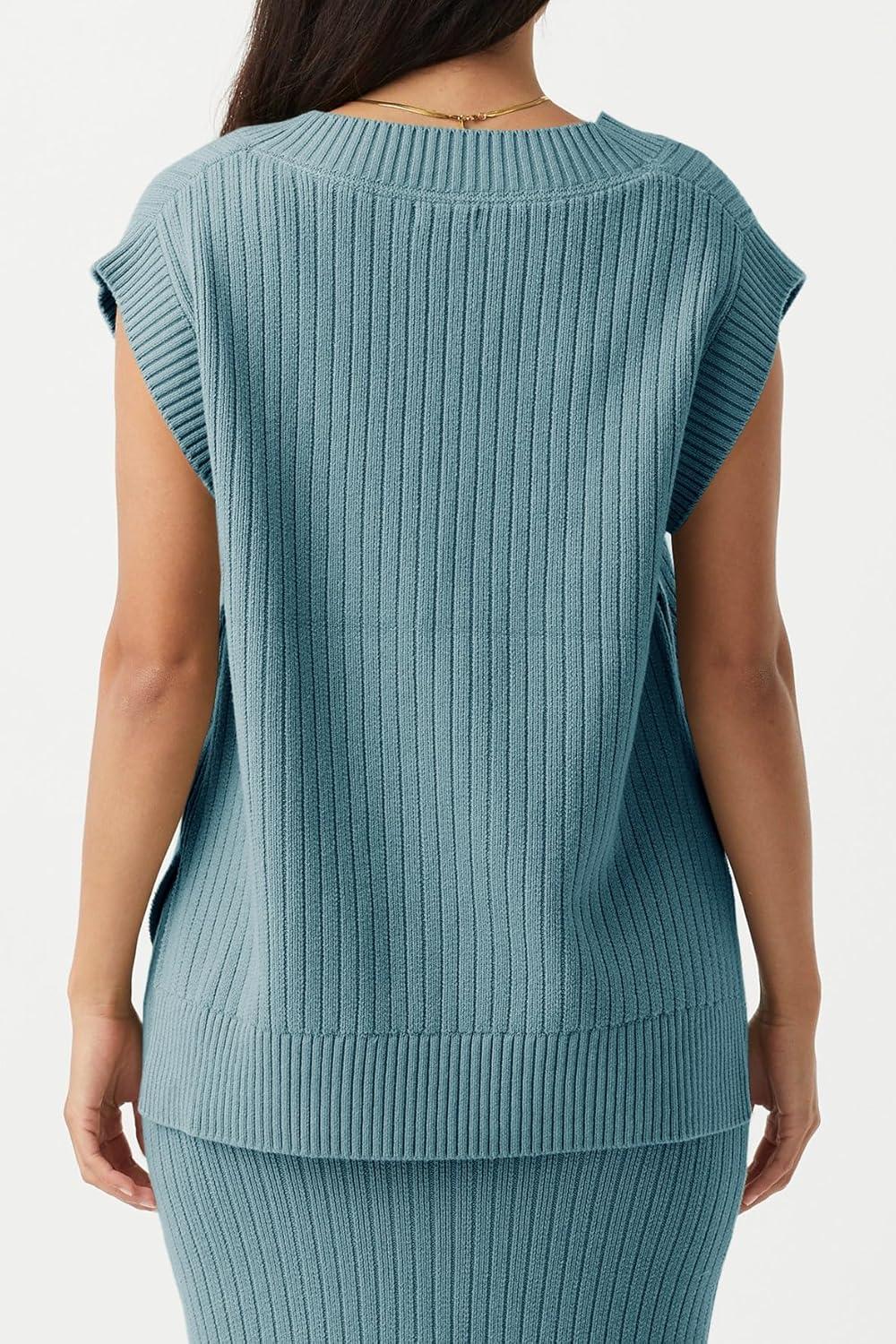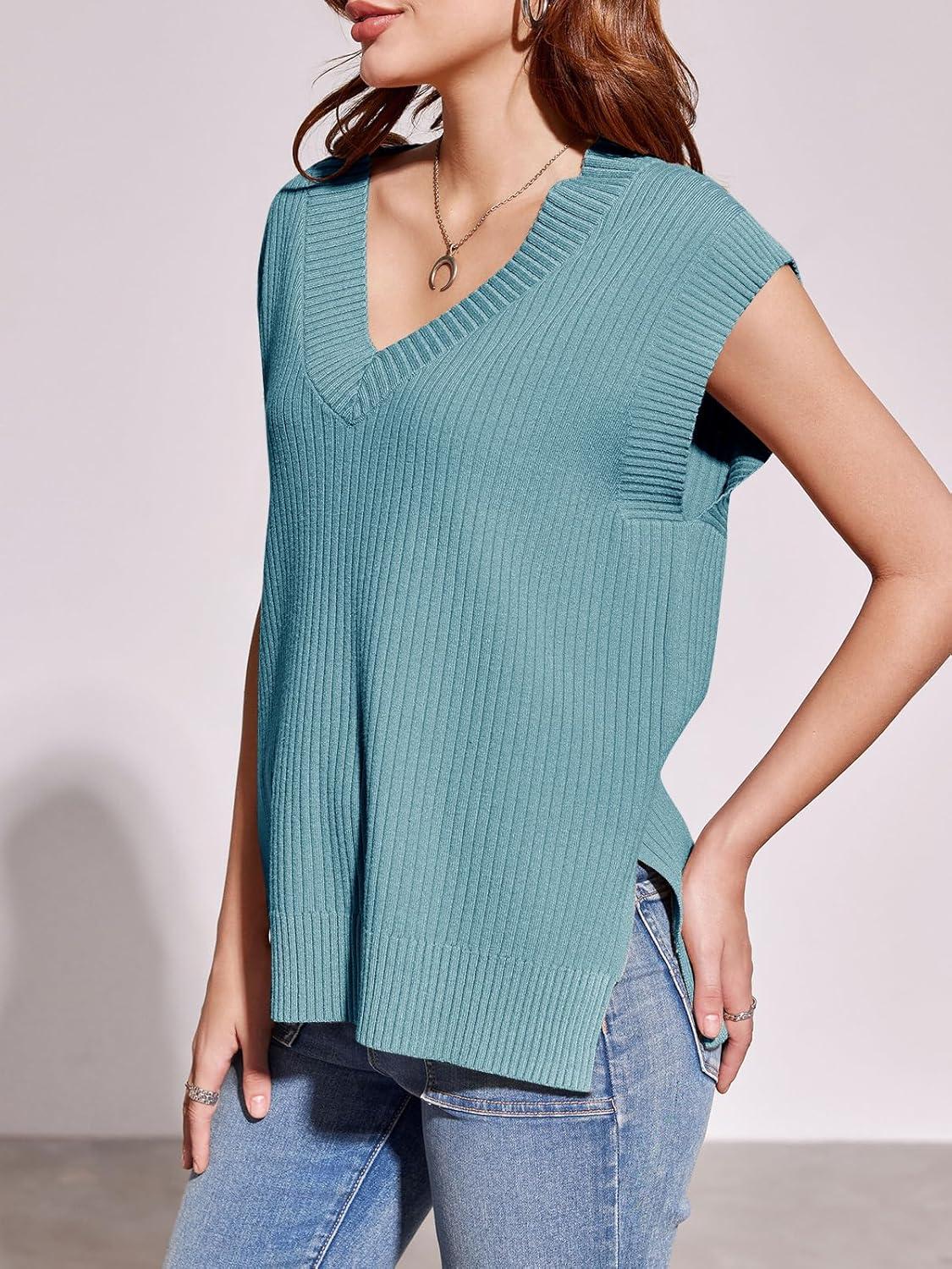 Saodimallsu Womens V Neck Sweater Vest Oversized Ribbed Knit Sleeveless Casual Loose Fit Pullover Tank Top(Blue)