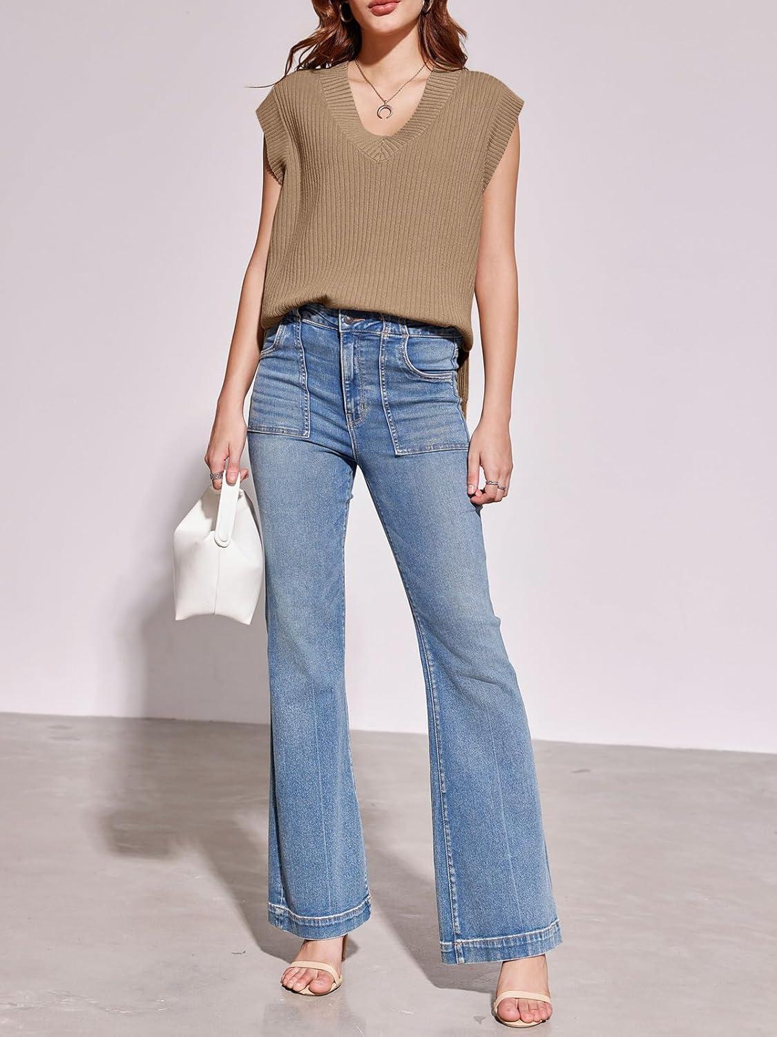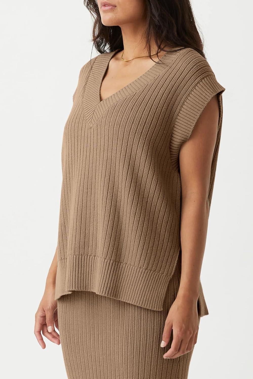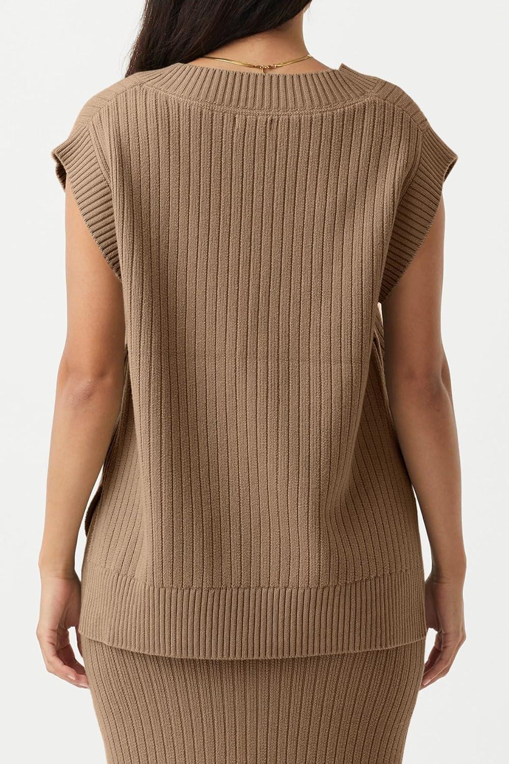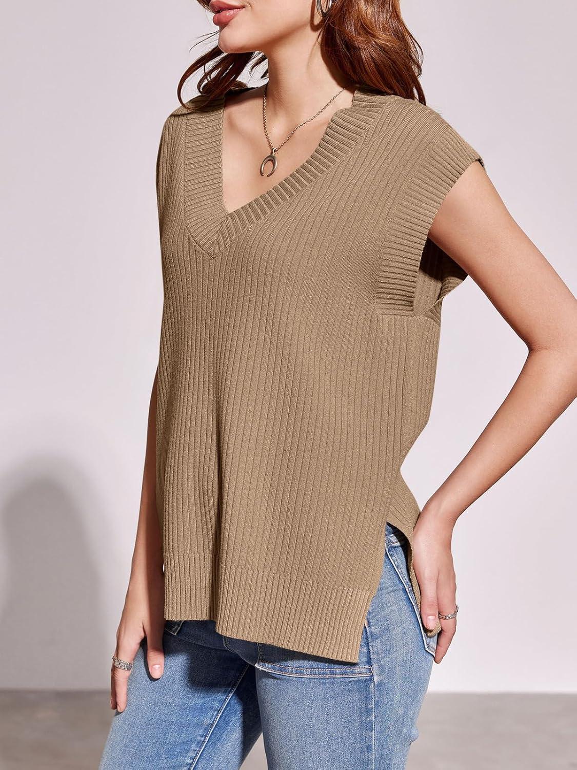Saodimallsu Womens V Neck Sweater Vest Oversized Ribbed Knit Sleeveless Casual Loose Fit Pullover Tank Top(Brown)