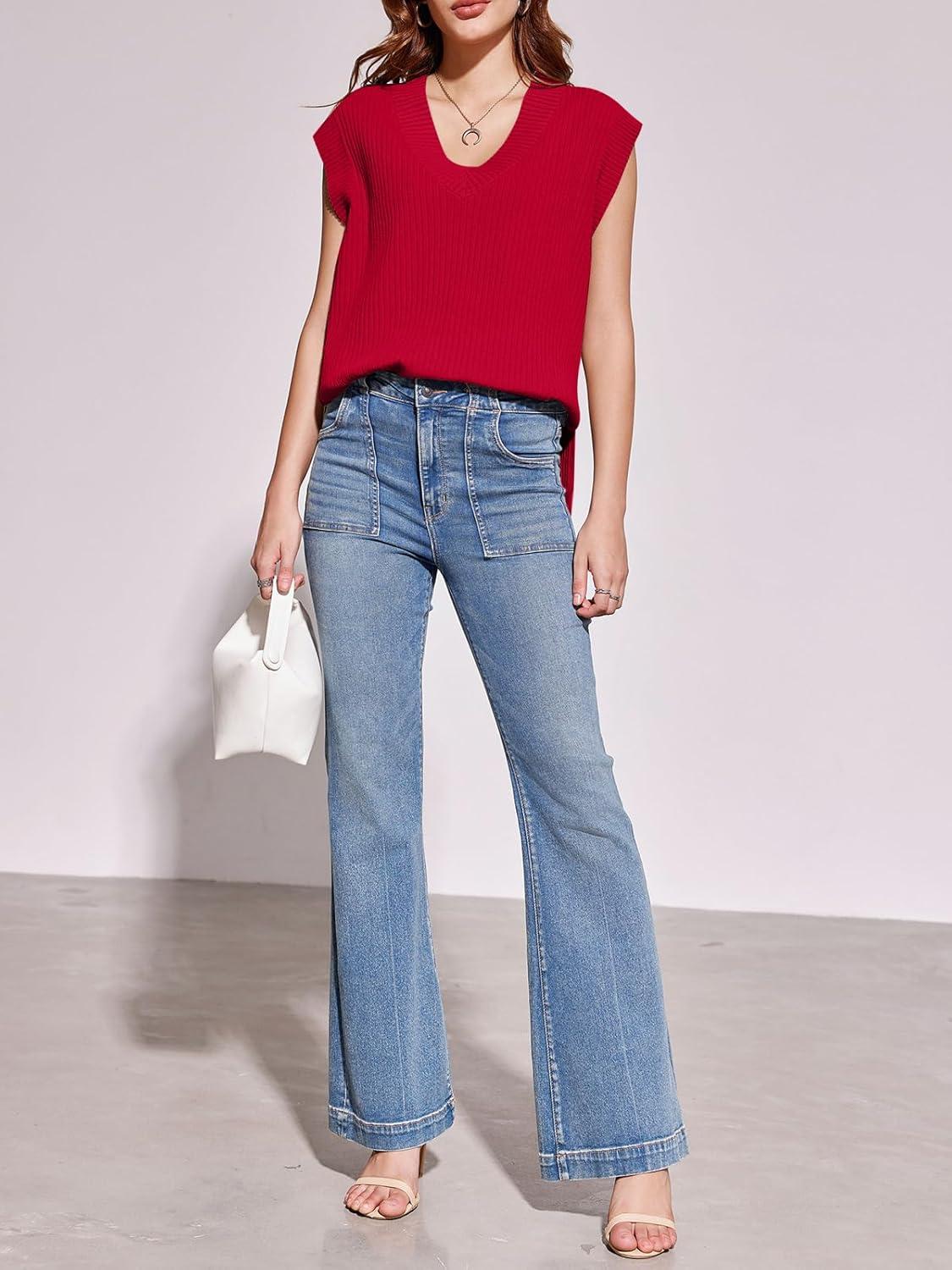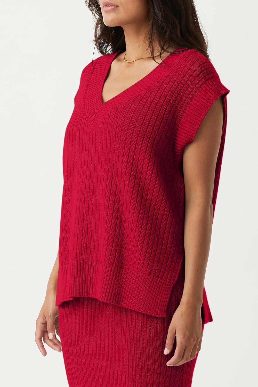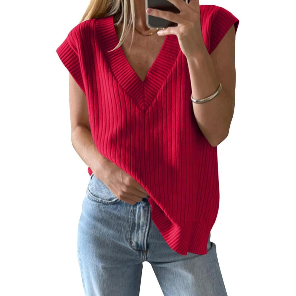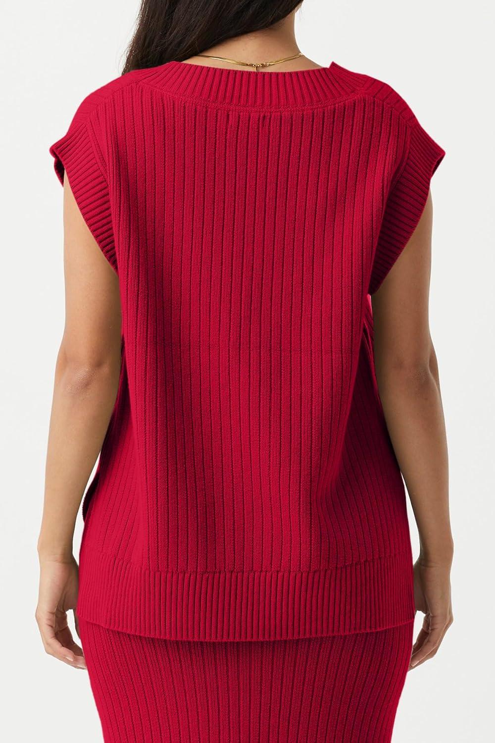 Saodimallsu Womens V Neck Sweater Vest Oversized Ribbed Knit Sleeveless Casual Loose Fit Pullover Tank Top(Red)