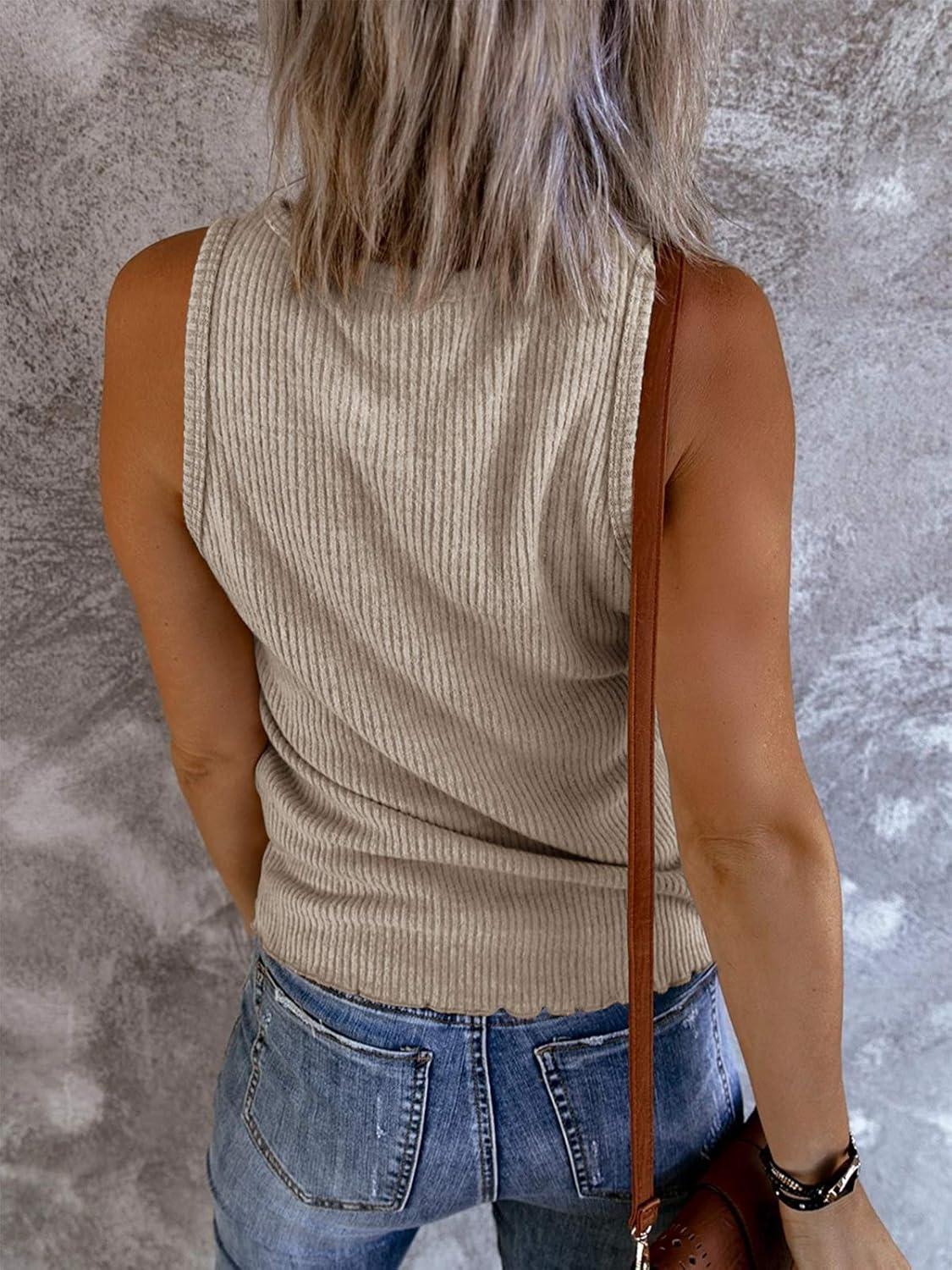 Saodimallsu Womens V Neck Tank Tops Summer Ribbed Sleeveless Henley Shirts Casual Loose Button Up Cami Knit Tees(Beige)