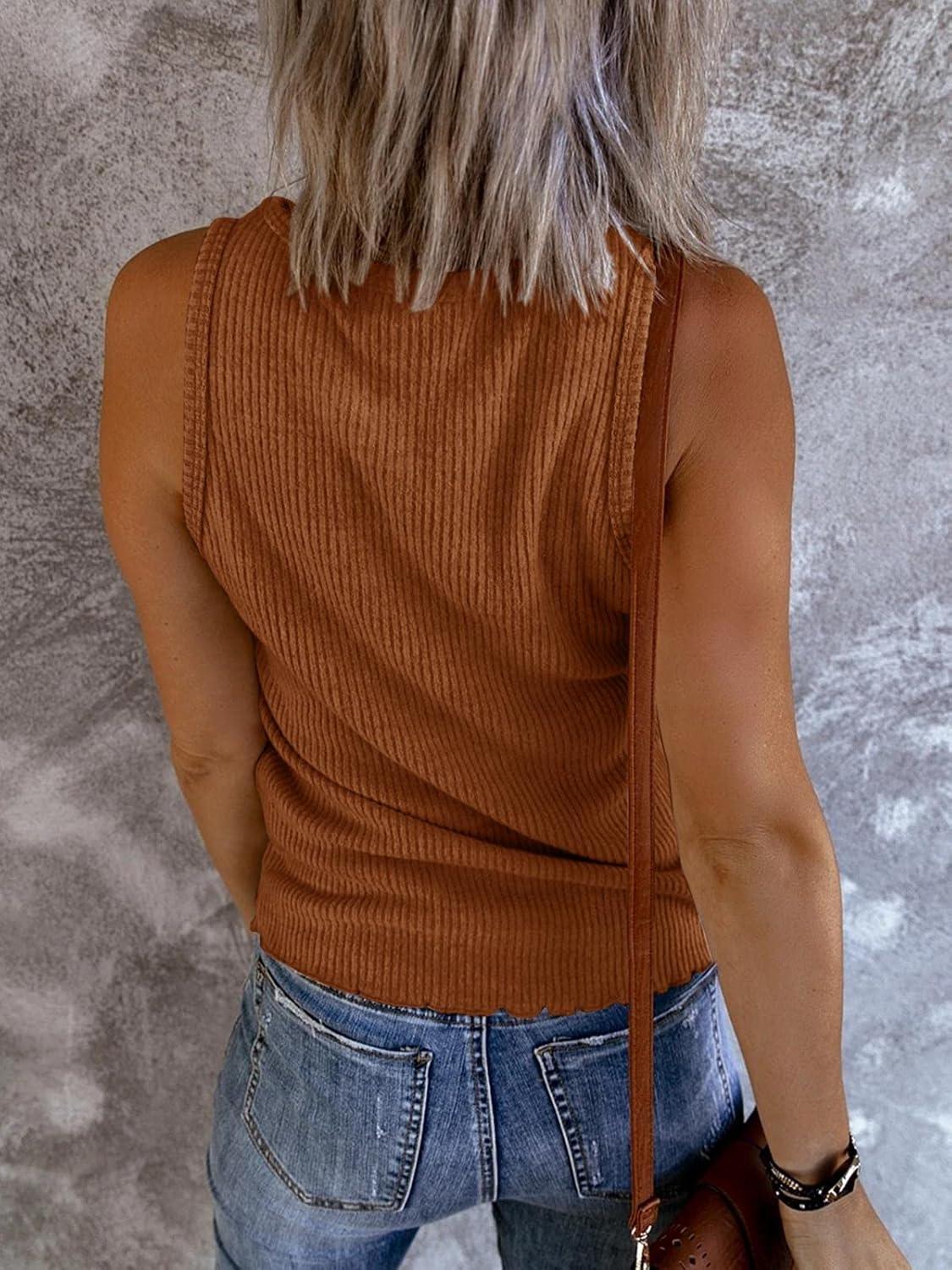 Saodimallsu Womens V Neck Tank Tops Summer Ribbed Sleeveless Henley Shirts Casual Loose Button Up Cami Knit Tees(Golden Brown)