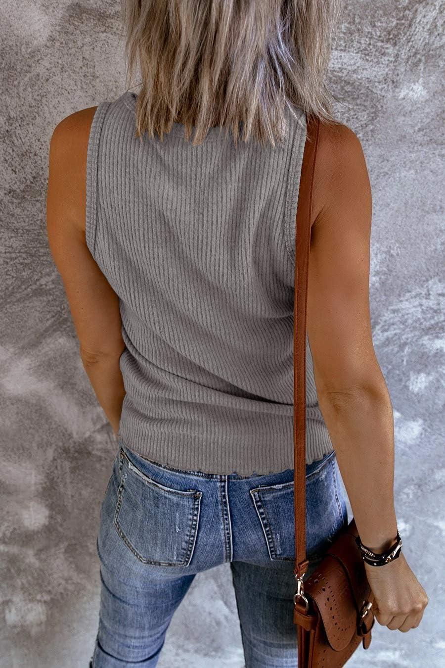 Saodimallsu Womens V Neck Tank Tops Summer Ribbed Sleeveless Henley Shirts Casual Loose Button Up Cami Knit Tees(Grey)