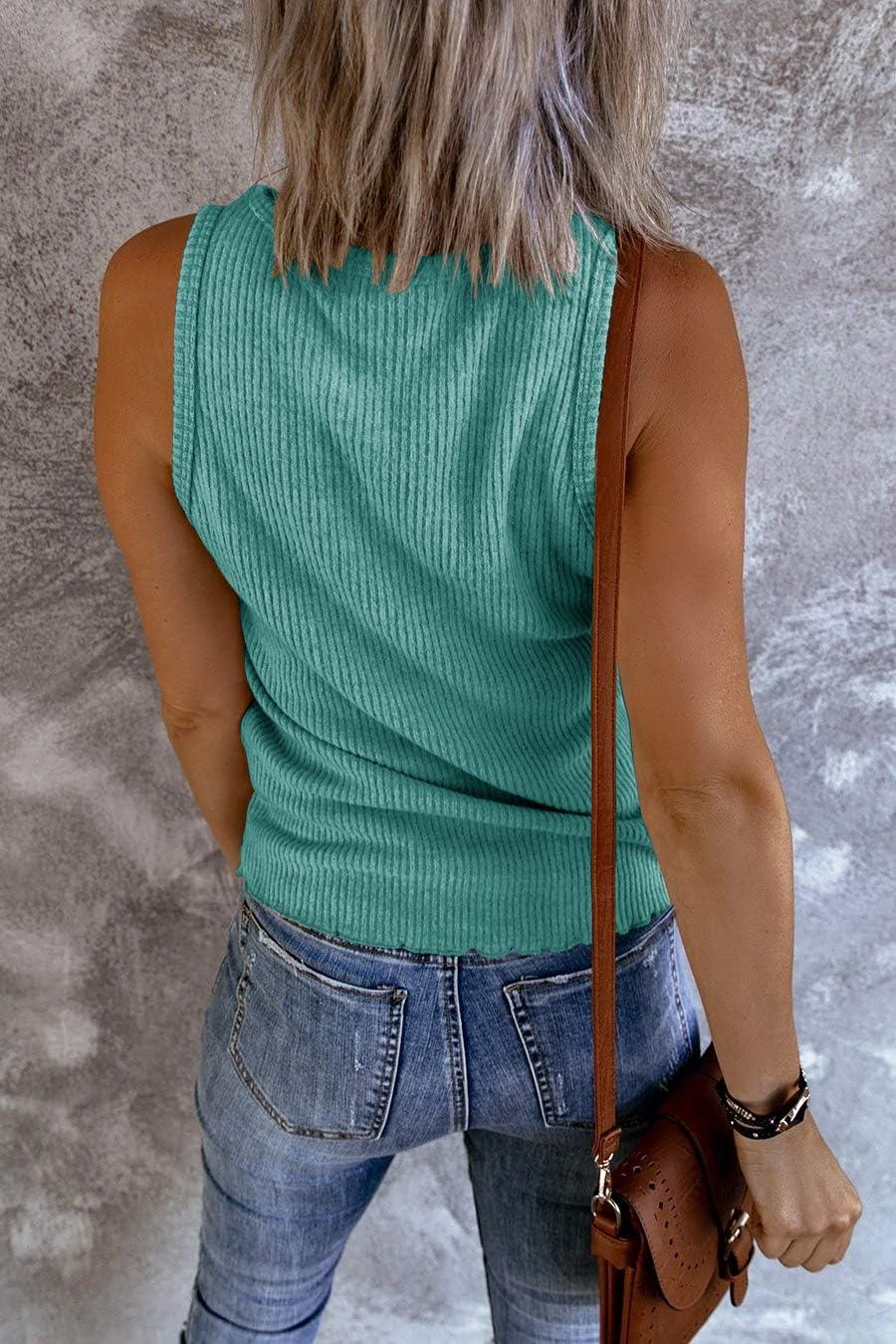 Saodimallsu Womens V Neck Tank Tops Summer Ribbed Sleeveless Henley Shirts Casual Loose Button Up Cami Knit Tees(Light Green)