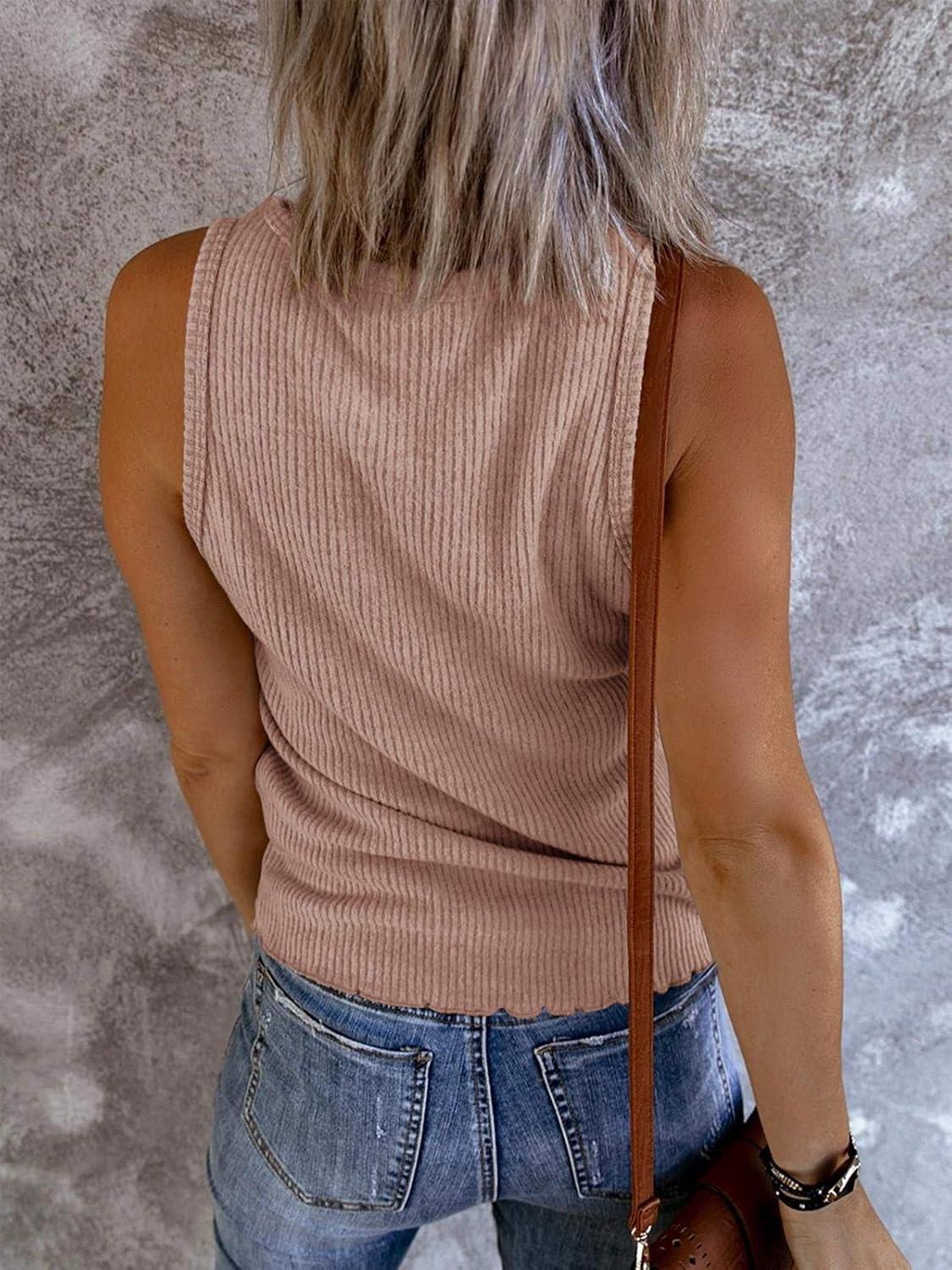 Saodimallsu Womens V Neck Tank Tops Summer Ribbed Sleeveless Henley Shirts Casual Loose Button Up Cami Knit Tees(Pink)
