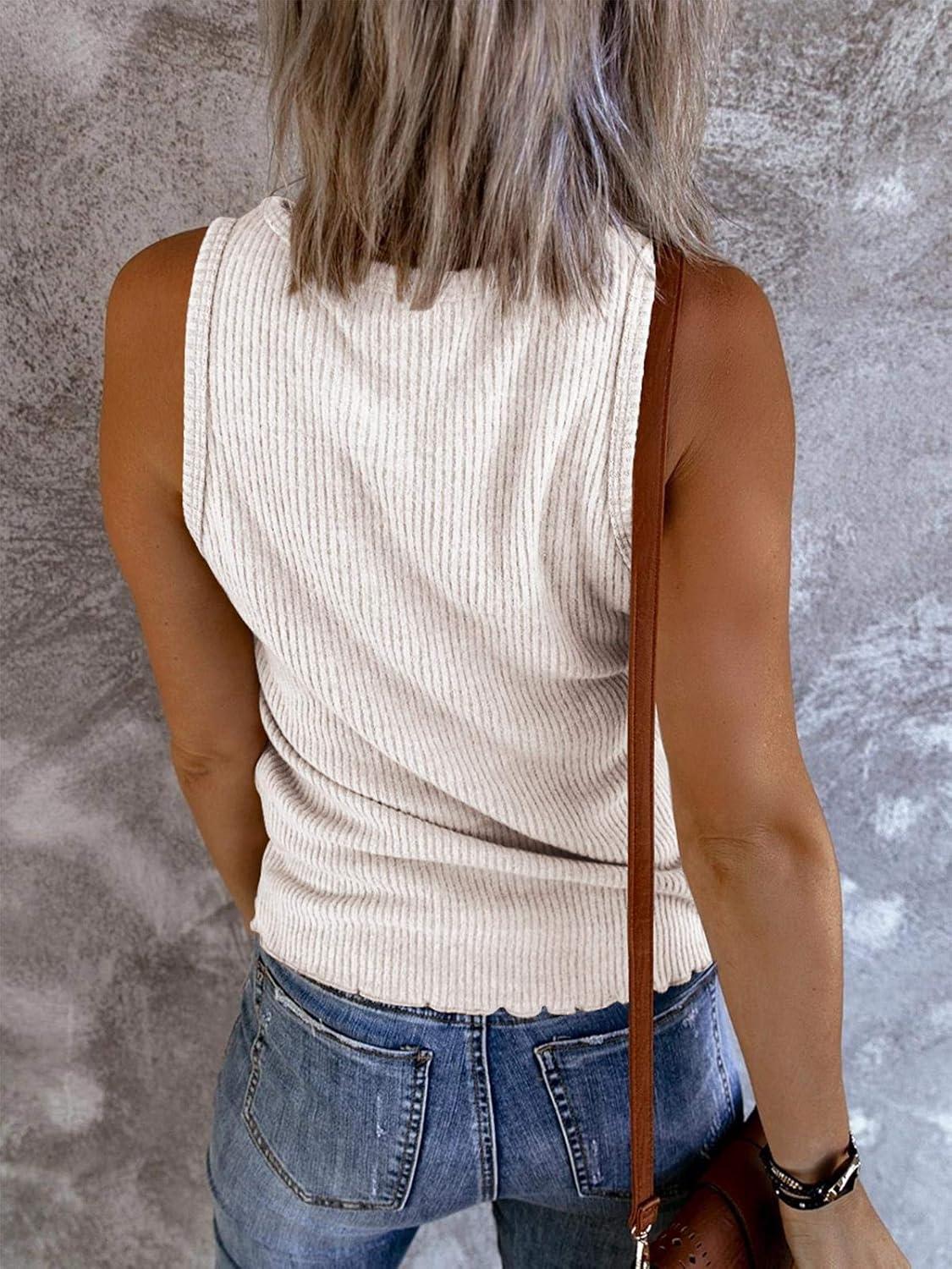 Saodimallsu Womens V Neck Tank Tops Summer Ribbed Sleeveless Henley Shirts Casual Loose Button Up Cami Knit Tees(White)