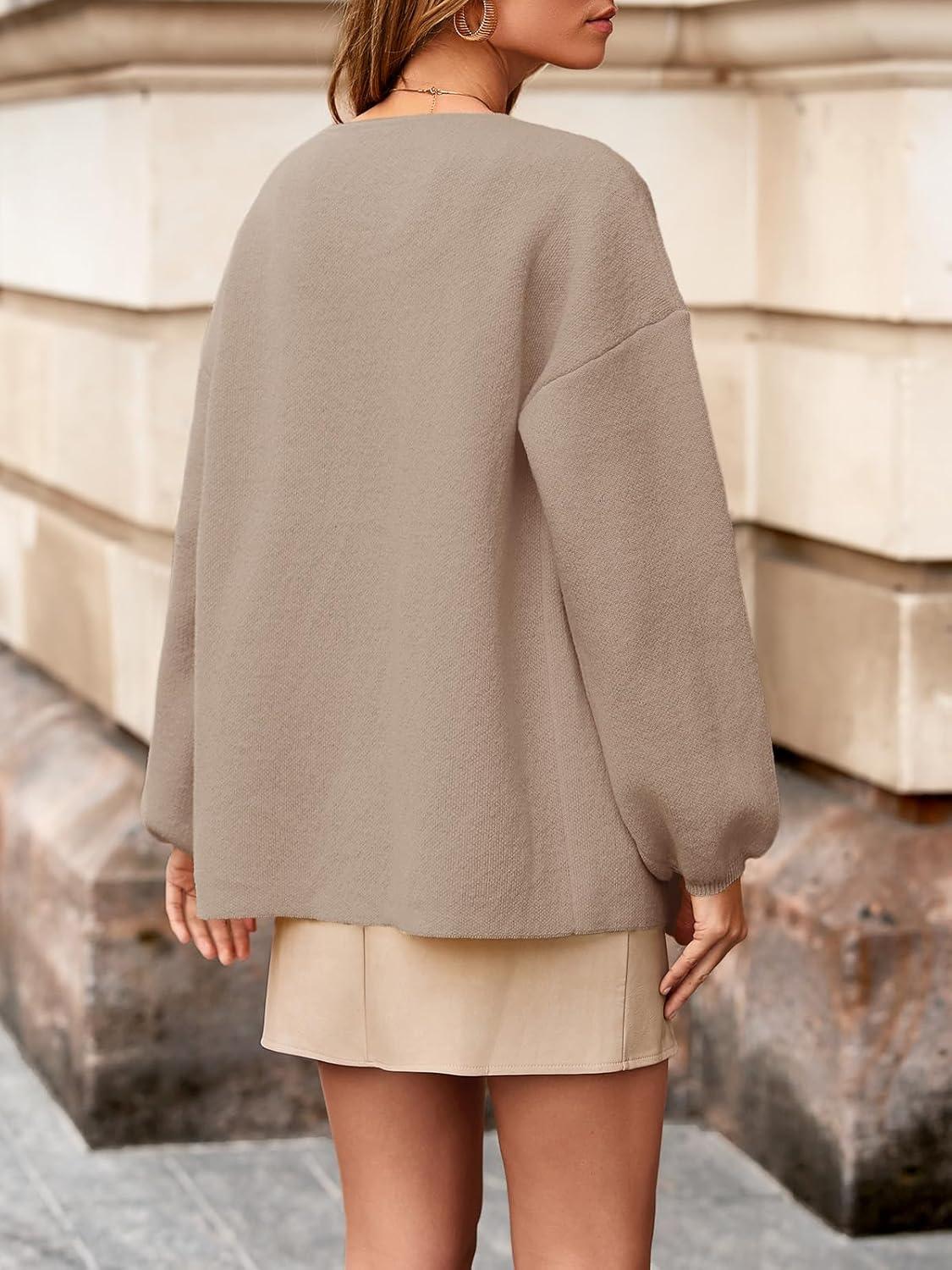Saodimallsu Womens Wrap V Neck Cardigan Sweaters Tie Front Long Sleeve Soft Knit Dressy Work Fall Sweater Blazer(Khaki)